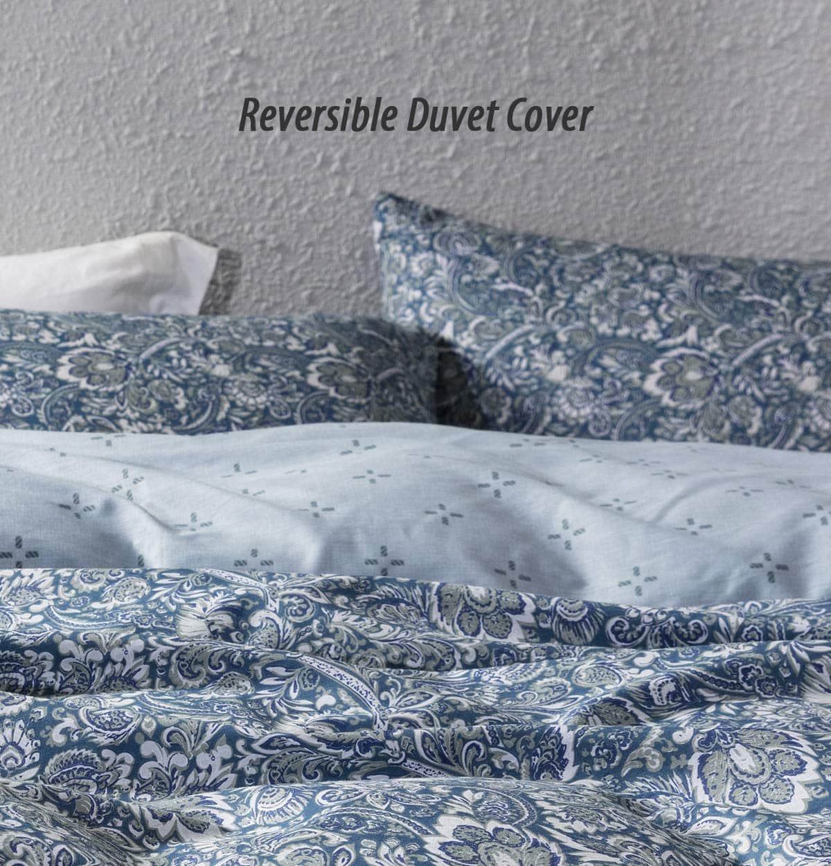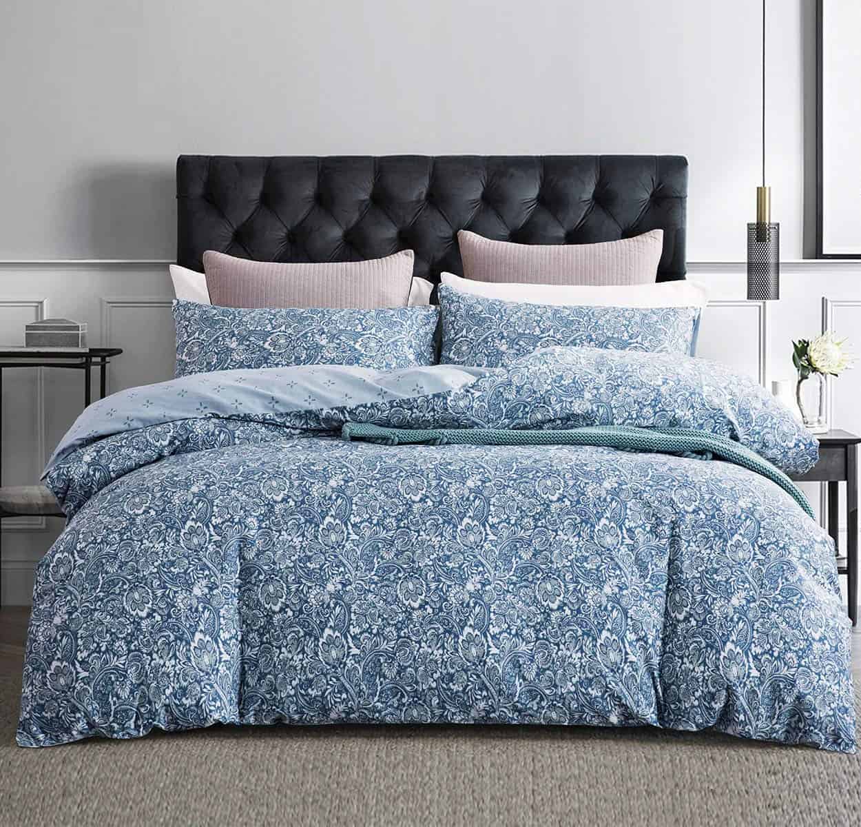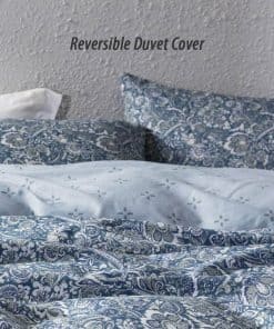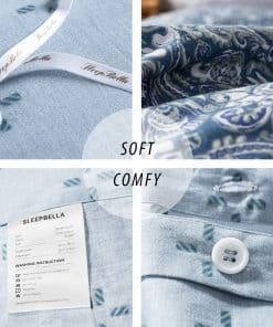 1. JUEGO DE ROPA DE CAMA INCLUYE – 1x funda nórdica; 2x fundas de almohada. SIN EDREDÓN. Tamaño King: funda nórdica (104″x 90″), fundas de almohada (20″x36″). 2. DISEÑO REVERSIBLE Elegante estampado paisley y color azul, puedes cambiar el patrón del frente y la parte trasera de la funda nórdica según tu estado de ánimo. Un color, un estado de ánimo. 3. ALGODÓN IMPRESO SUAVE Y CÓMODO – Sumérgete en la comodidad y el lujo. Nuestra funda nórdica está hecha de algodón de 600 hilos. La suavidad y comodidad al tacto siempre te brindan un dulce sueño y te acompaña a lo largo de las cuatro estaciones. 4. CIERRE DE BOTÓN FUERTE- La funda nórdica cuenta con un elegante cierre de botón, cosiendo 4 esquinas para mantener tu edredón en su lugar. Utilizamos costuras fuertes y de alta calidad para asegurar que los botones permanezcan firmemente sujetos. 5. FÁCIL CUIDADO Con la resistencia y durabilidad, la funda nórdica SLEEPBELLA no se encoge, decolora o rasga fácilmente, lo suficientemente resistente para soportar ciclos frecuentes de lavado y secado. Lavable a máquina, y nuestra funda nórdica se vuelve más suave después de cada lavado.