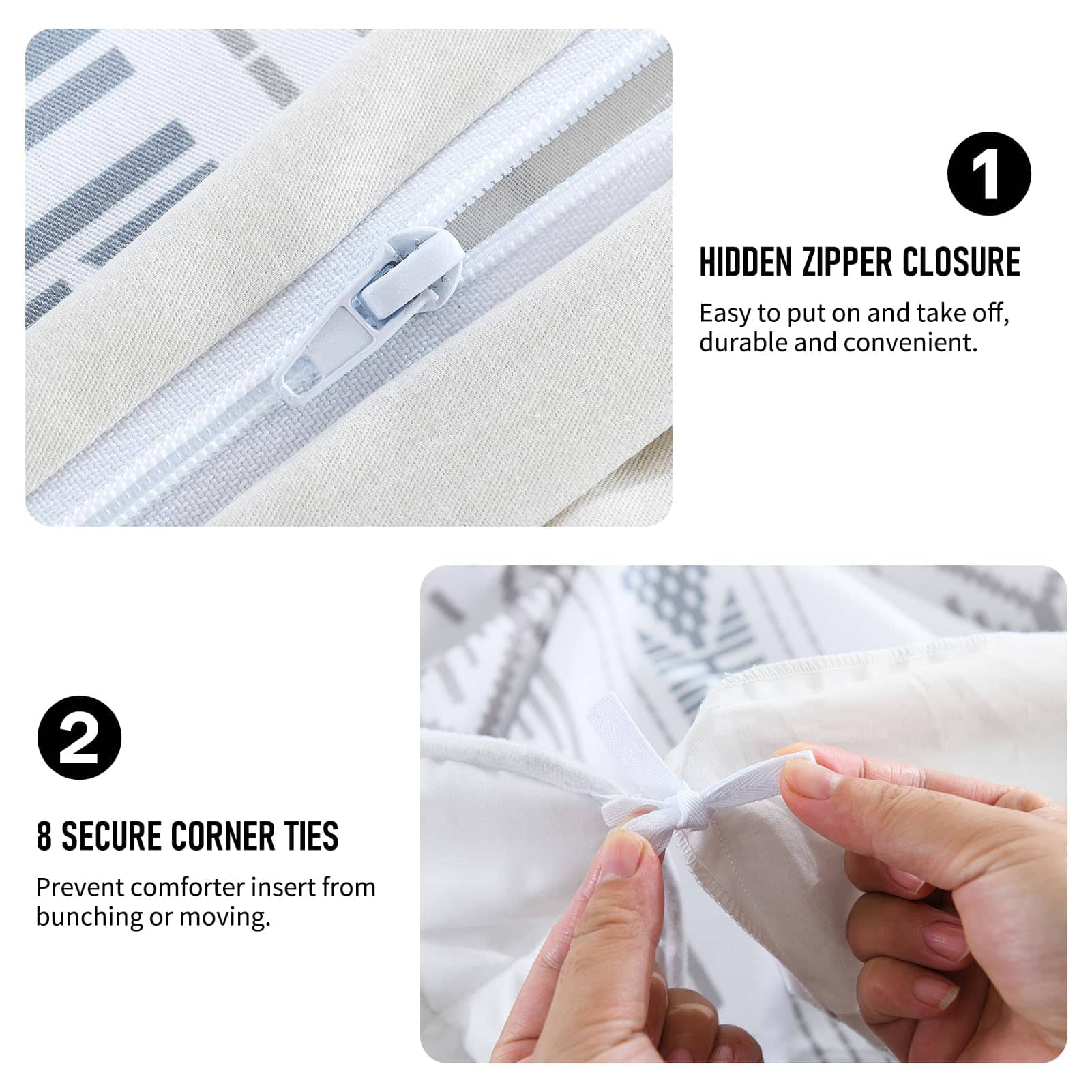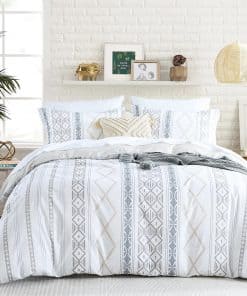 1. Tamaño King & Paquete Incluye: PERHOM te trae un juego de ropa de cama de algodón de 3 piezas: 1 funda nórdica azteca tamaño King (104 «x 90»), 2 fundas de almohada (20 «x 36»). Nota: El relleno nórdico y las almohadas no están incluidos. 2. Algodón Ultra Suave & Mejor Sueño: Material certificado Oeko-Tex Standard 100. La funda nórdica con patrón geométrico está hecha de algodón 100%. La artesanía prelavada hace que la tela tenga una excelente suavidad, no se desvanece fácilmente, no tiene olor. El juego de funda nórdica tamaño King es adecuado para todo el año, es suave, cómodo y transpirable. 3. Cierre de Cremallera & 8 Lazos en las Esquinas: El conveniente cierre de cremallera oculto sin complicaciones facilita la inserción y extracción de tu relleno nórdico en la funda nórdica, los ocho lazos en las esquinas mantienen el relleno nórdico en su lugar. Dejándote dormir pacífica y cómodamente toda la noche. 4. Diseño & Regalo: La funda nórdica de algodón tiene un exquisito patrón de rayas aztecas en la funda nórdica y las fundas de almohada, ideal para un look de estilo campestre. Funcionará fabulosamente con cualquier decoración interior, adecuado para cualquier tema de habitación, haciendo que tu habitación se vea elegante y limpia. Es una buena elección para tus amigos y familiares. 5. Instrucciones de Cuidado: La colección de funda nórdica geométrica tamaño King es fácil de cuidar, por favor no la laves con alta frecuencia. Lavable a máquina a menos de 60 . No usar lejía. Secar en secadora con ciclo suave y sin calor. CONSEJO: Lavar del revés, es mejor secar al aire natural.