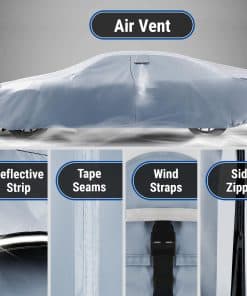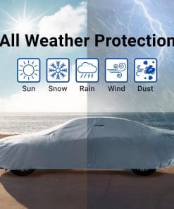 4. CARACTERÍSTICAS AVANZADAS PARA UNA PROTECCIÓN SUPERIOR: Diseñada para la durabilidad, nuestra funda cuenta con costuras impermeables para evitar filtraciones, así como ventilación que permite el flujo de aire y reduce la acumulación de humedad, manteniendo su coche seco. El material GSM de alta calidad de varias capas está cortado a máquina y prensado a presión para una resistencia máxima y una protección duradera, sin importar las condiciones climáticas.