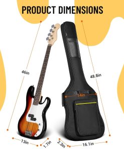 1. Funda ligera y portátil para bajo eléctrico: Dimensiones de la funda 48.8 x16.1 x2.3, bout superior 14.2, bout inferior 16.1, diseñada para bajos eléctricos de 43 y 46 pulgadas de tamaño completo. Se ajusta a bajos estilo Precision y Jazz Bass. NOTA: esta funda de guitarra es demasiado pequeña para sostener un bajo acústico. Para asegurarse de comprar lo que desea, compare primero las dimensiones de nuestra funda con la de la guitarra para ver cómo quedará.