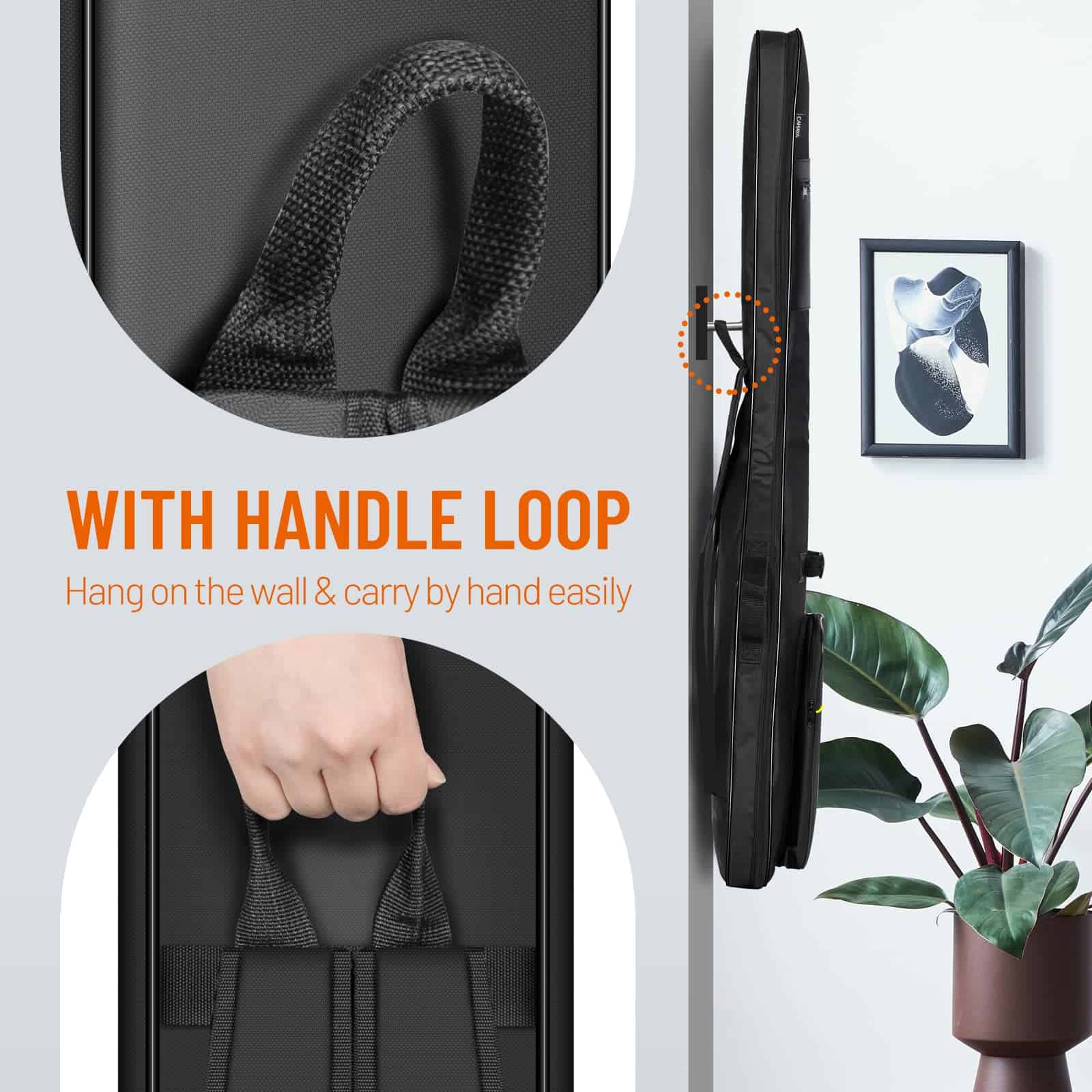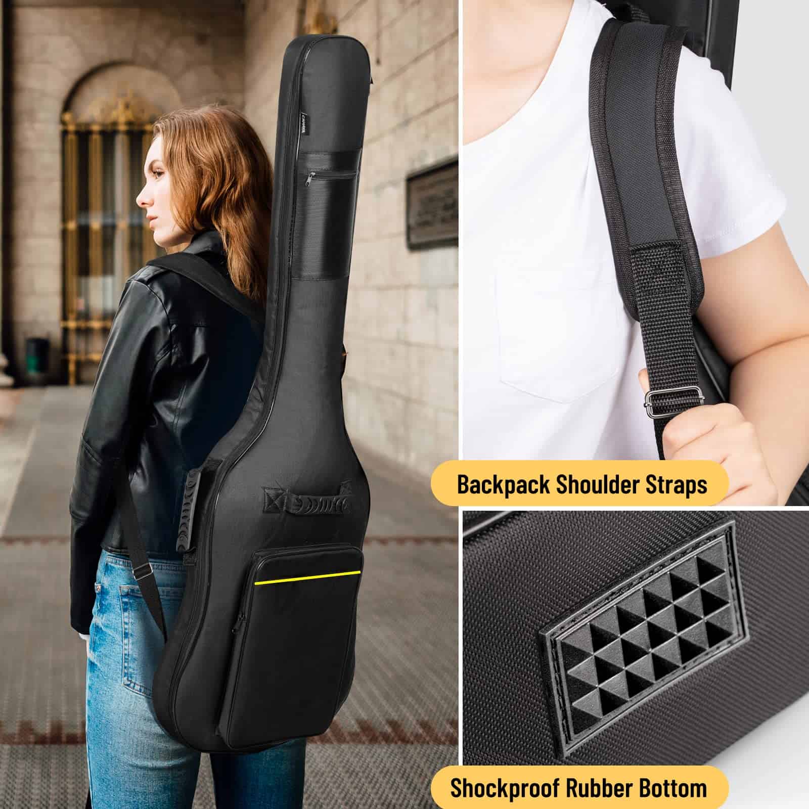 5. Correas de hombro ajustables dobles + 2 manijas de agarre convenientes, ofreciendo múltiples formas de trasladar. Llévala como mochila utilizando las correas de hombro para reducir el estrés de la guitarra, o llévala directamente en tu mano con la manija lateral.