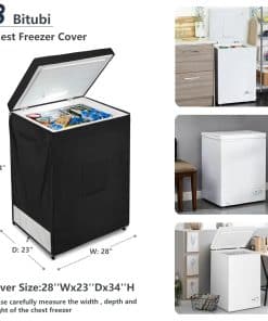 INFORMACIÓN DEL PRODUCTO Tamaño 28″ W x 23″ D x 34″ H Textura del material: Tela resistente al agua de 420D con revestimiento impermeable de PVC. Características: Protección Impermeable, a Prueba de Polvo, a Prueba de Sol, Protección para Todas las Estaciones. Contenido del paquete: 1 x Funda para Congelador de Pecho, 1 x Bolsa de Almacenamiento.