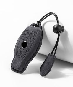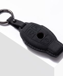 Funda para llave de coche de cuero genuino de gamuza con