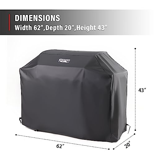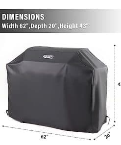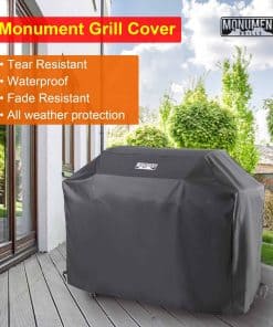 2. AMPLIA COMPATIBILIDAD – Se adapta a la mayoría de las parrillas de hasta 62 pulgadas de ancho x 20 pulgadas de profundidad x 43 pulgadas de alto en dimensiones montadas. Esta funda para parrilla está diseñada para adaptarse a Monument Grills 77352, 77352NG, Denali 405 y Denali 425.