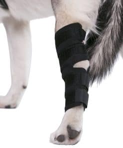 Funda para perros AGON extra soportante / envoltura de la pata trasera SOBRE LA FUNDA PARA PERROS AGON DOG HOCK Agon dog hock brace terapéutica es un producto terapéutico de última generación, clínicamente probado para reducir el dolor y la inflamación crónica. Nuestra extra soportante Envoltura de Pata Trasera para Perros fue diseñada para proporcionar un soporte y estabilización máximos mientras sigue siendo ligera y flexible. Una excelente opción para perros que necesitan soporte adicional mientras mantienen una vida activa. Las férulas para la articulación de la pata trasera Agon son las férulas más suaves pero más efectivas que serán adoradas por su perro. La férula para la articulación de la pata trasera Te Agon es una férula horizontal diseñada específicamente para la piel de los perros que los mantiene vivos todo el día. CUANDO NECESITA TU PERRO FÉRULAS Cualquier esguince de la articulación canina Caso de artritis Para soporte después de una operación Cojera de la pata trasera Cansancio Estabilización de la articulación trasera después de una lesión La lesión más común que sufren los perros es una pierna desgarrada, lo que los hace perezosos mientras sufren dolor. La enfermedad puede requerir algo de descanso, soporte o incluso una cirugía dependiendo de la condición. Para brindar apoyo a tu pequeño mientras se mueve con una pierna desgarrada, las férulas Agon siempre están presentes. Usar la férula para perros ayudará a que tu perro se mueva menos, lo cual es altamente recomendado por los veterinarios. Una vez inmovilizada, la rodilla descansa lo que reduce el dolor seguido de la disminución de la inflamación. Material 70% Algodón + 30% Nailon Mide el CIRCUNFERENCIA 2″ Arriba de la articulación de la pata trasera y 2″ debajo de la misma Medida: Pequeño: Arriba: 5.5 ; Debajo: 3.25″ Mediano: Arriba: 6.25 ; Debajo: 4″ Grande: Arriba: 7 ; Debajo: 5.25″ Extra Grande: Arriba: 7.5 ; Debajo: 6.25″