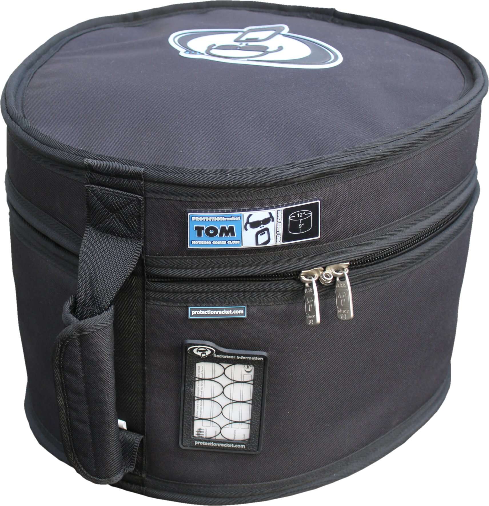 Funda para set de batería en forma de huevo de poliéster semi-rígido de 600 deniers con forro de lana y acolchado interior.