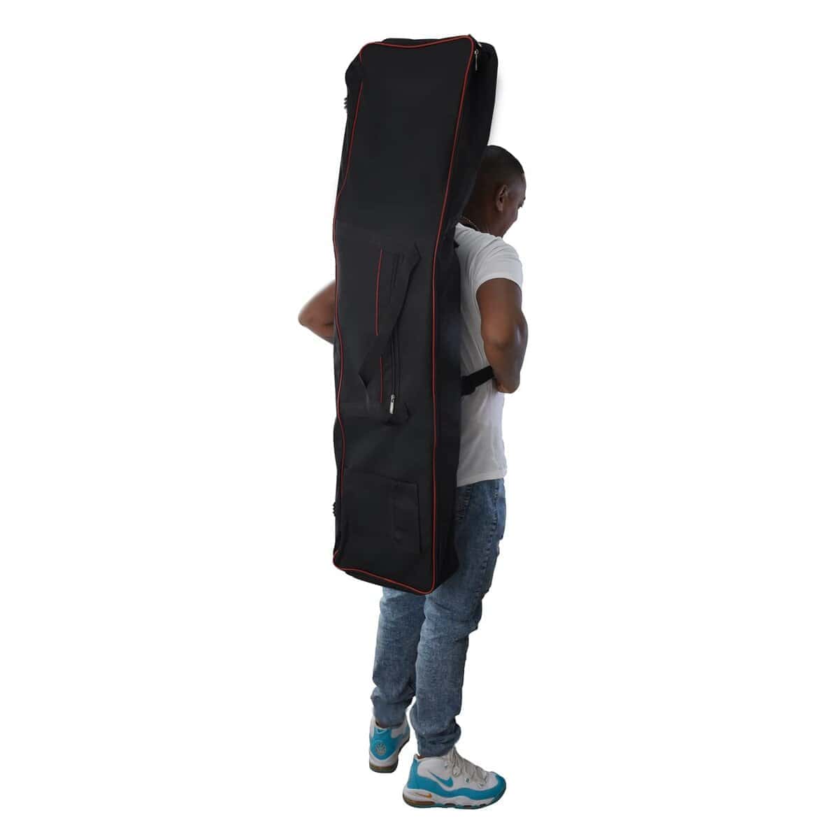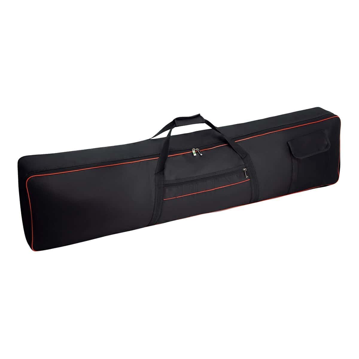 Funda para teclado de 88 teclas TOP DRAWER BRITISH Material duradero para una protección definitiva Nuestra elegante funda para teclado está hecha de tela Oxford 600D de alta calidad y resistente. La bolsa también ofrece tela suave de 0,39 pulgadas de espesor, para asegurar que tu teclado esté seguro y protegido mientras está dentro de la bolsa. Seguridad con correas adicionales y almacenamiento La funda para teclado está diseñada con una correa ajustable en el interior, lo que te permite asegurar tu teclado y evitar que se mueva durante el transporte. Viaja desde el estudio a los conciertos y de regreso, mientras tu mente está tranquila sabiendo que tu teclado está disfrutando de la máxima protección. La bolsa también te ofrece bolsillos exteriores adicionales, ideales para almacenar tus accesorios como libros, teléfonos, notas y más. Tamaño perfecto para 88 teclas Midiendo 53 x 14 x 6 , nuestra funda para teclado es el tamaño perfecto para adaptarse cómodamente a la mayoría de los teclados de 88 teclas sin dificultad. El ajuste seguro de la bolsa garantiza una mayor protección para tu teclado, asegurando que no se deslice en el interior, lo que podría causar golpes y daños no deseados. Transporte ajustable y cómodo Para garantizar que tu funda para teclado sea fácil y cómoda de llevar, cuenta con correas traseras ajustables, ideales para llevar la bolsa en la espalda con facilidad. La bolsa también está diseñada con asas de transporte cómodas y reforzadas, asegurando que tus manos permanezcan libres de tensiones no deseadas al transportar tu teclado. Cables organizados Para mayor comodidad, permitiéndote mantener tus cables ordenados y organizados, también recibirás una útil herramienta organizadora de cables. Esta herramienta es ideal para mantener tus cables en perfecto orden y organizarlos