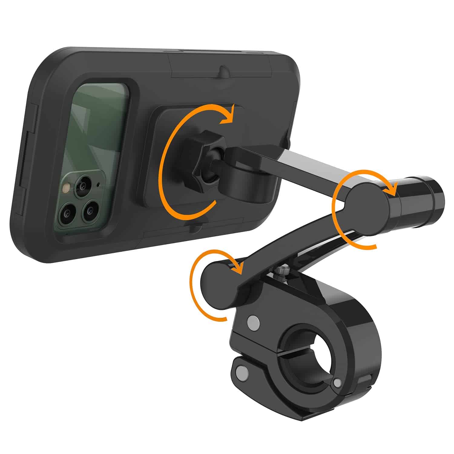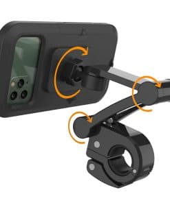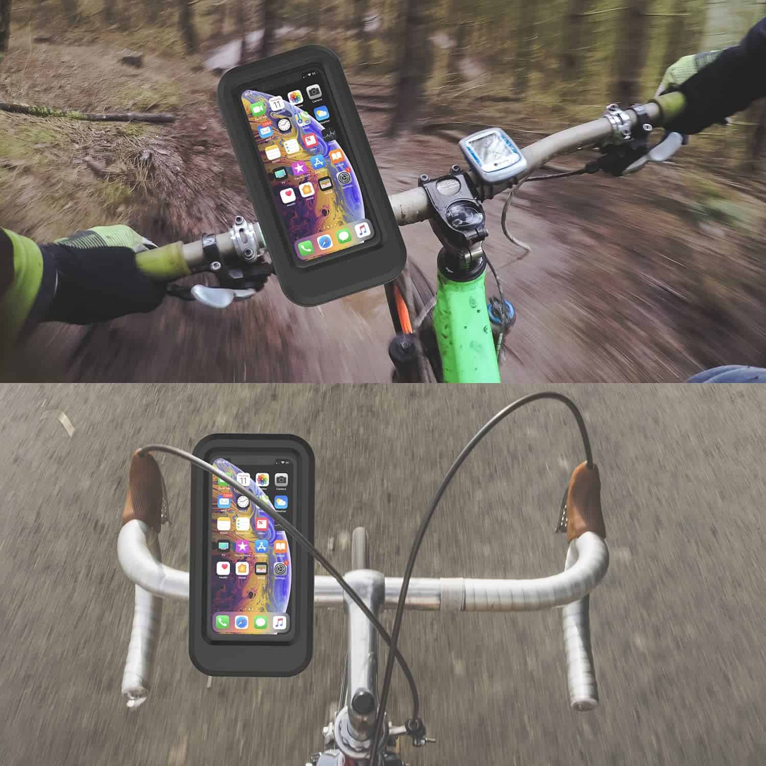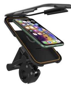 Funda para teléfono de bicicleta resistente al agua Punkcase | Soporte universal para manillar para teléfonos celulares de hasta 6.7″ | Pantalla táctil receptiva | Rotación de 360 grados | Soporte impermeable completamente ajustable para bicicletas y motocicletas Negro PUNKCASE WATERPROOF BIKE STAND: es hora de llevar tu ciclismo al máximo con la funda para bicicleta definitiva. No más preocupaciones por dejar caer tu teléfono de los bolsillos y mochilas o tener que detenerse para verificar el mapa. Simplemente instala el soporte con un solo tornillo, asegura tu teléfono en la carcasa y estarás listo para tu próxima aventura MÁXIMA COMPATIBILIDAD: Ajusta tu teléfono en la posición que desees | Rotación COMPLETA de 360 grados permite una visualización vertical y horizontal en el ángulo perfecto | Altura de 25 mm / 1″ – Funciona con la mayoría de los estuches para teléfonos | TAMAÑO DE MANILLAR AJUSTABLE: Se adapta a todos los manillares de bicicletas y motocicletas desde 0.86″ / 22 mm – 1.1″ / 28 mm de diámetro | Ideal para cochecitos y cuatrimotos | Soporte impermeable para teléfonos de bicicleta SE ADAPTA A LA MAYORÍA DE LOS TELÉFONOS CELULARES de 4.5″-6.7″ de longitud + carcasa incluida, incluidos iPhone 11 Pro Max y Galaxy S20 Plus MÁXIMA SEGURIDAD: Resistente al agua certificado IPX6 – Protege tu teléfono de la lluvia, la nieve, el barro y el polvo | Resistente carcasa exterior de ABS a prueba de golpes para una protección definitiva contra caídas | MECANISMO DE TRIPLE BLOQUEO para un cierre perfectamente ajustado | PLACA TRASERA MAGNÉTICA sostiene tu teléfono de forma segura incluso durante los paseos todoterreno más accidentados MÁXIMA CAPACIDAD DE RESPUESTA: El protector de pantalla resistente a los arañazos permite un control total de la pantalla táctil incluso con guantes compatibles | DISEÑO ABSORBENTE DE IMPACTOS para una toma estable de videos | COMPATIBLE CON FACE-ID | Aperturas para auriculares y cables de datos – no es necesario quitar tu teléfono cuando se esté quedando sin batería | ENSAMBLAJE FÁCIL: Instala rápidamente tu soporte para bicicleta SIN NECESIDAD DE HERRAMIENTAS – simplemente coloca el soporte en el manillar y ajusta el tornillo de rotación MÁXIMA GARANTÍA: Punkcase respalda sus productos. Si no estás completamente satisfecho con tu soporte para teléfono de bicicleta resistente al agua, simplemente contáctanos para una devolución sin problemas y SIN HACER PREGUNTAS, esa es la Garantía de por Vida de Punkcase!