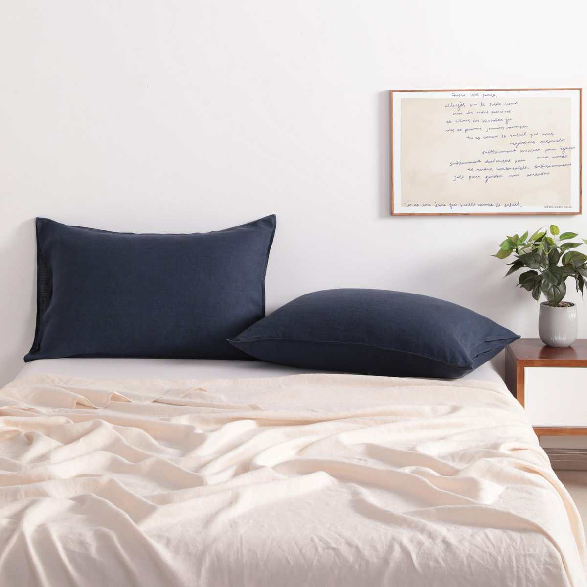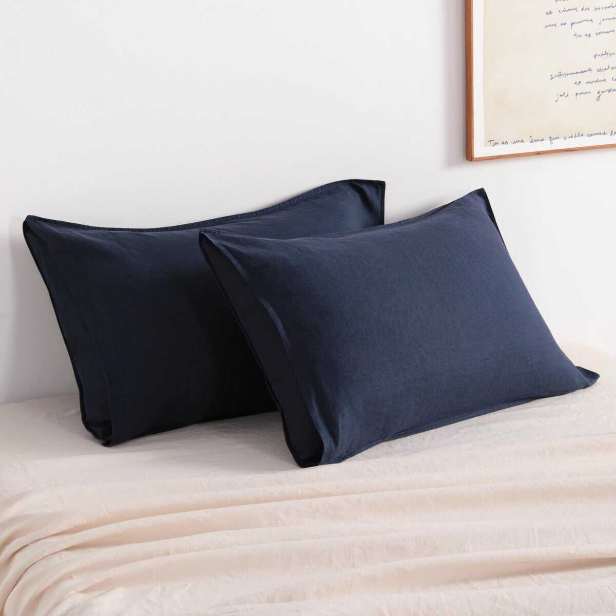 Fundas de Almohada de Lino Francés NTBAY – -Azul Marino