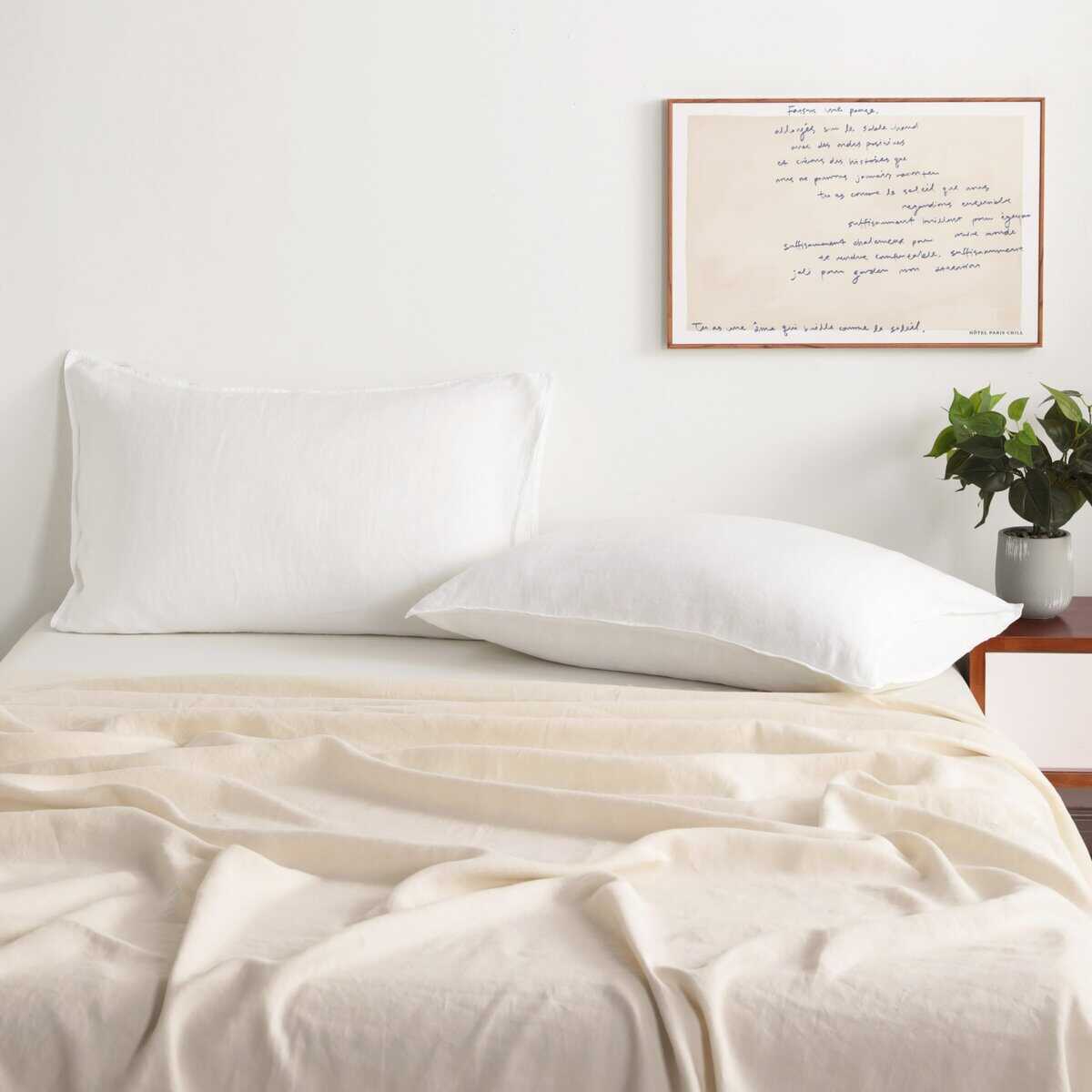 Fundas de Almohada de Lino Francés NTBAY – -Blanco