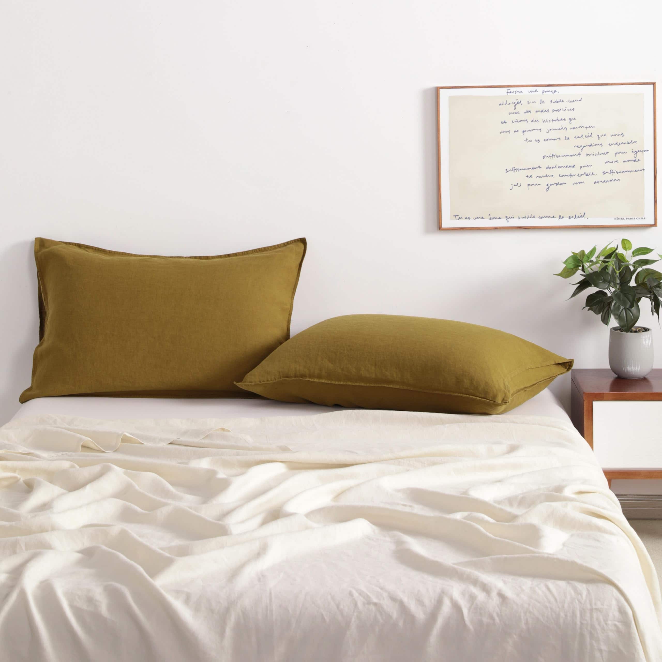 Fundas de Almohada de Lino Francés NTBAY – -Olive