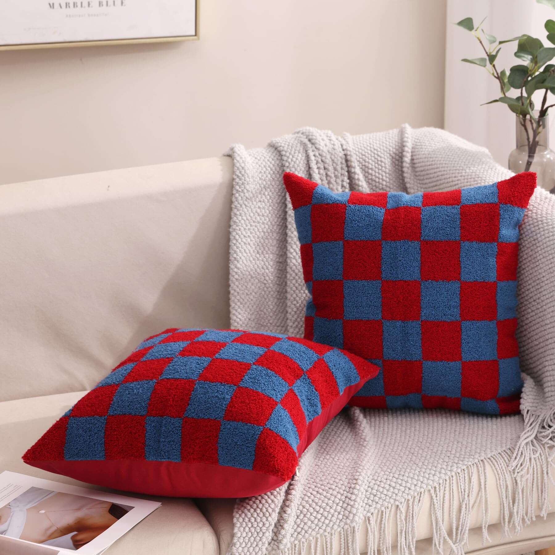 Fundas de Almohada Decorativas Bordadas a -Rojo Azul