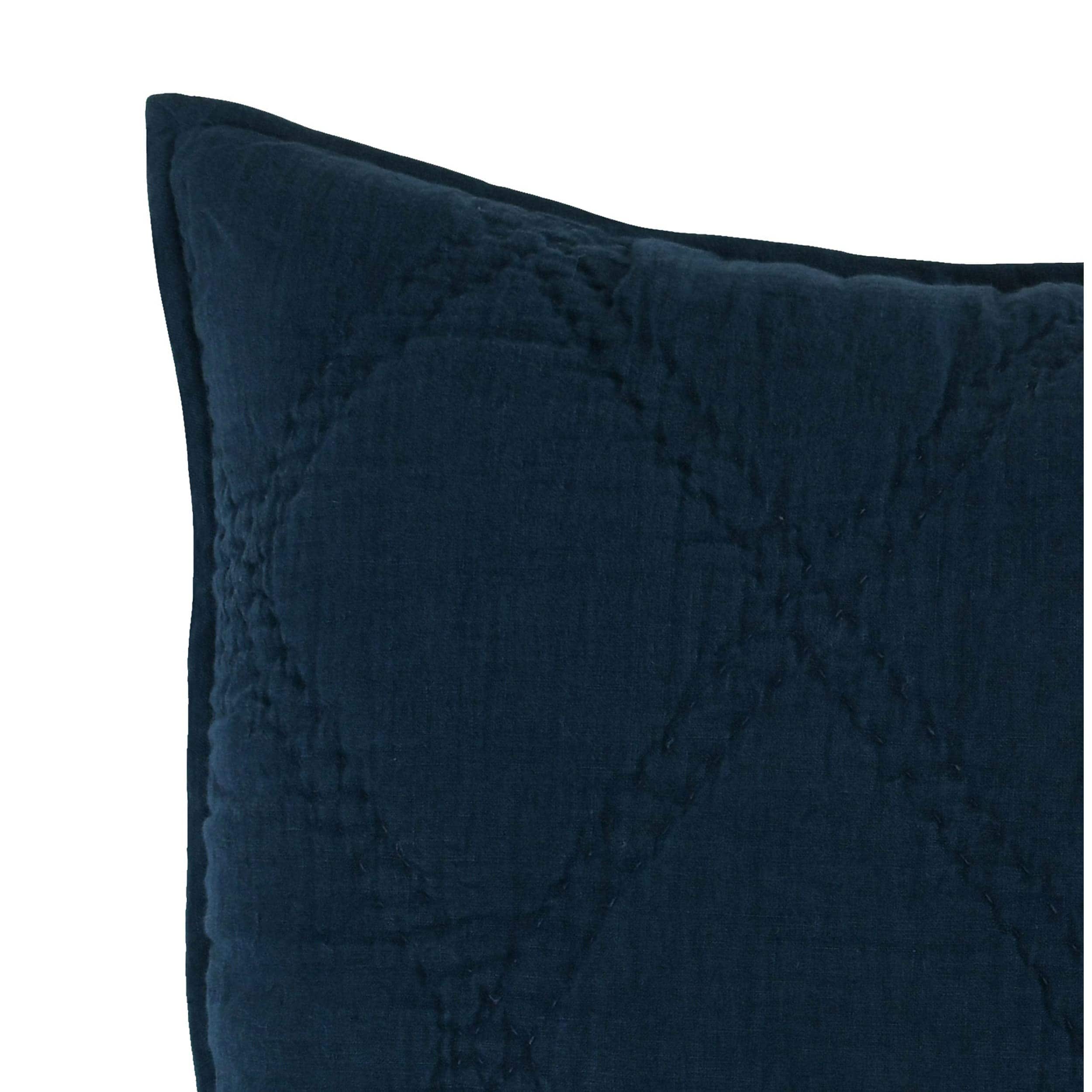 1. Una funda de almohada euro. 2. Relleno de poliéster ultra suave para una comodidad agradable. 3. Exquisitamente tejido con lino de lino belga azul medianoche suave. 4. Estéticamente cosido a mano con un gran patrón de diamante y fácil de limpiar con un cierre estilo sobre. 5. Bordes autovinculantes suaves y duraderos Dimensiones: 26L x 36W, en pulgadas