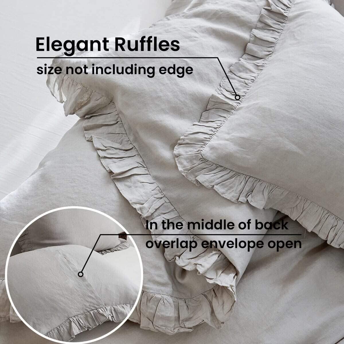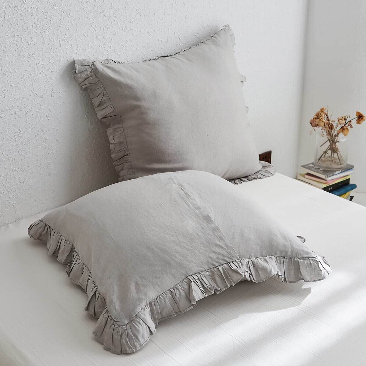Fundas de Almohada Euro de Lino Francés 100% con Volantes –