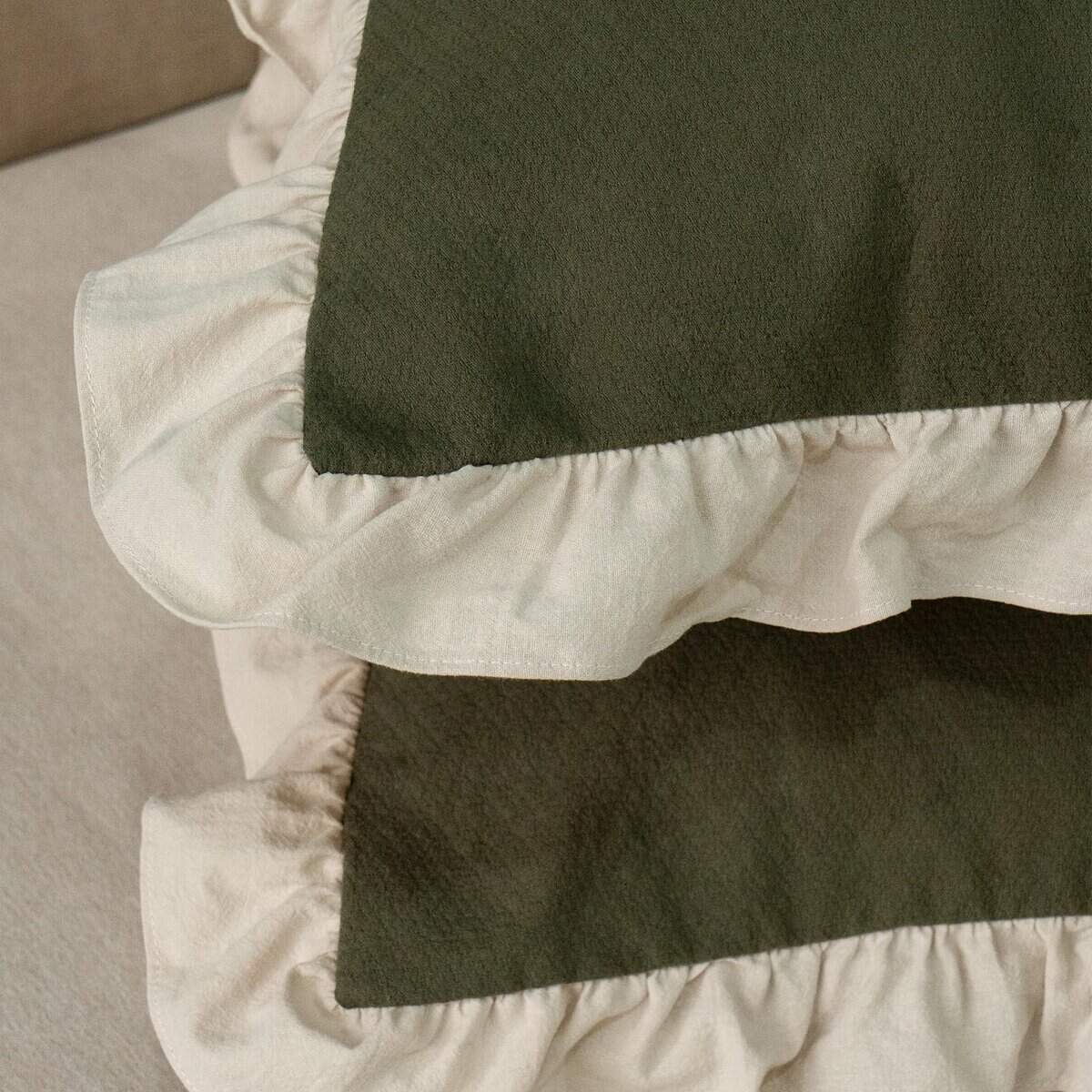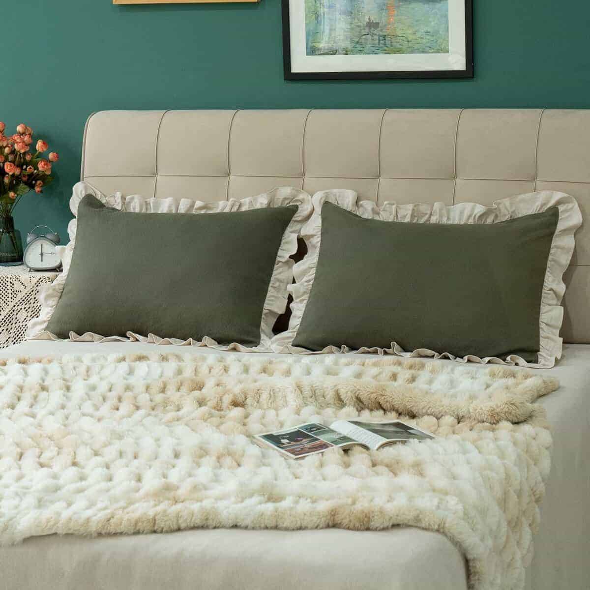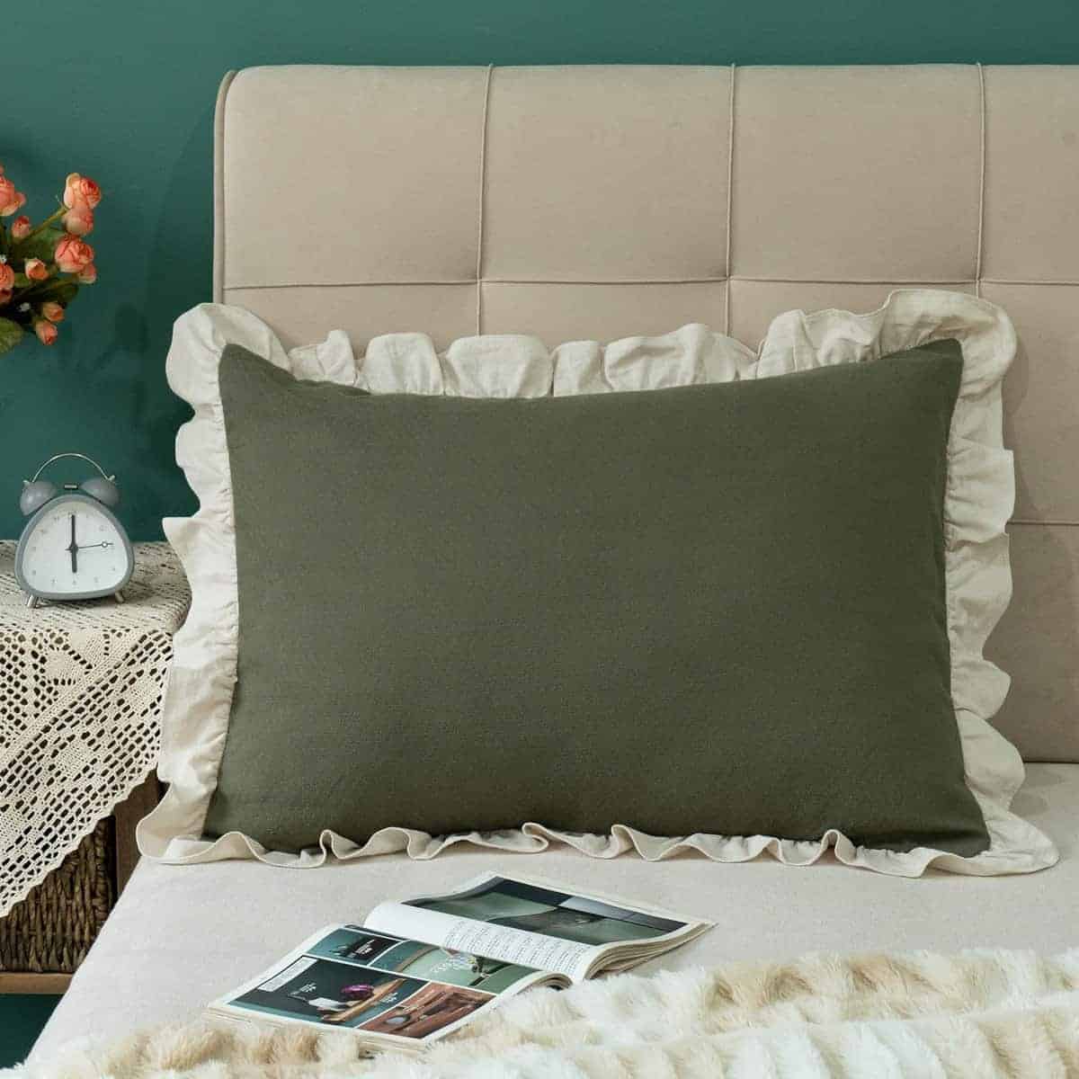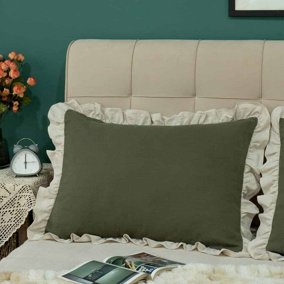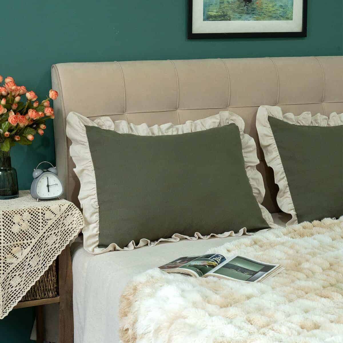 Tela de algodón sólido beige de alta calidad lavada, borde de volante vintage, estilo romántico victoriano rústico, lo que hace que las fundas de almohada sean más naturales y elegantes. La tela densa y pesada, la exquisita confección y costura, el cierre de sobre hacen que la funda sea más duradera y conveniente para usar en todas las estaciones. Material 100% algodón con tecnología de lavado. Extremadamente transpirable y absorbente de la humedad, puede ayudarte a alejarte de la humedad y la incomodidad, haciendo que tu sueño sea más agradable y cómodo. Ofrece un confort sereno y relajante de una manera elegante para actualizar tu hogar.