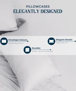 Cada funda de almohada está cuidadosamente diseñada para adaptarse perfectamente a tus almohadas king size, gracias a su cierre de sobre que mantiene las almohadas en su lugar sin deslizamientos ni derrames. El dobladillo de 5 pulgadas añade un toque de elegancia y sofisticación a tu cama, creando un ambiente acogedor y lujoso.