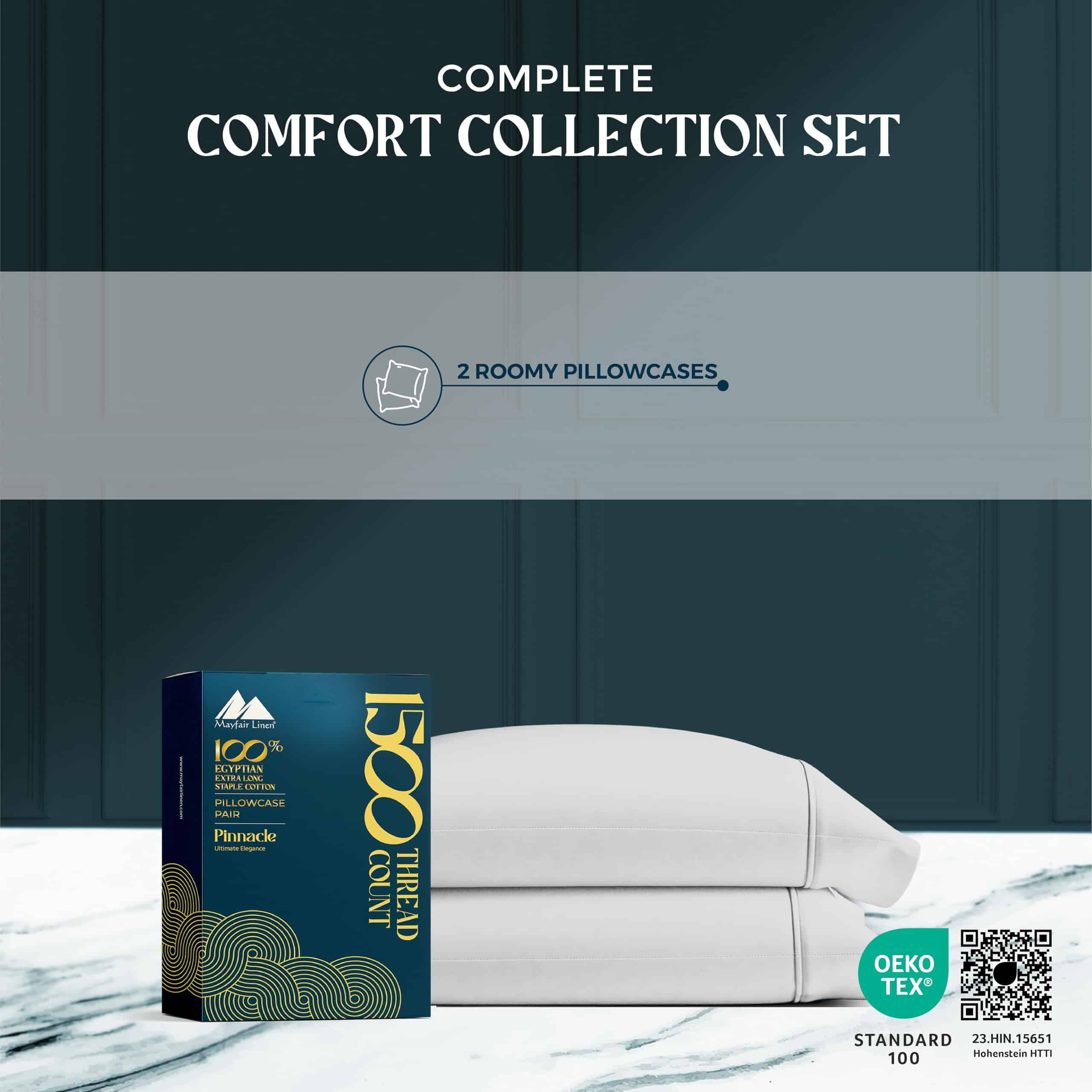 Además, las fundas de almohada de algodón egipcio de Mayfair Linen son resistentes a la contracción, la pelusa y la decoloración, lo que las hace duraderas y fáciles de mantener. La mercerización adicional mejora su resistencia y brillo, manteniendo su color y calidad original incluso después de múltiples lavados.