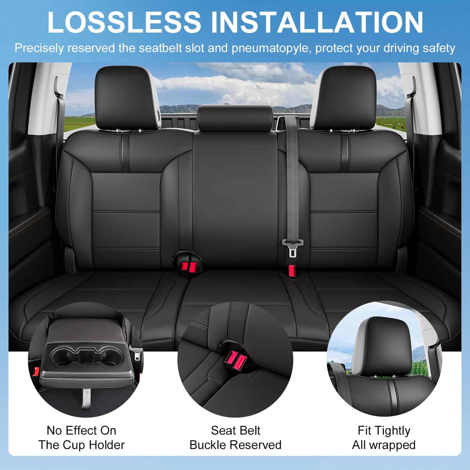 Nuestro protector de asiento de auto reemplazo para Chevy Silverado 2019-2025 está hecho de cuero nappa de alta calidad. Las fundas de asiento hechas de este material pueden resistir el desgaste diario y son impermeables y a prueba de sudor para una limpieza fácil. Es transpirable y garantiza una agradable experiencia de conducción incluso durante viajes largos.