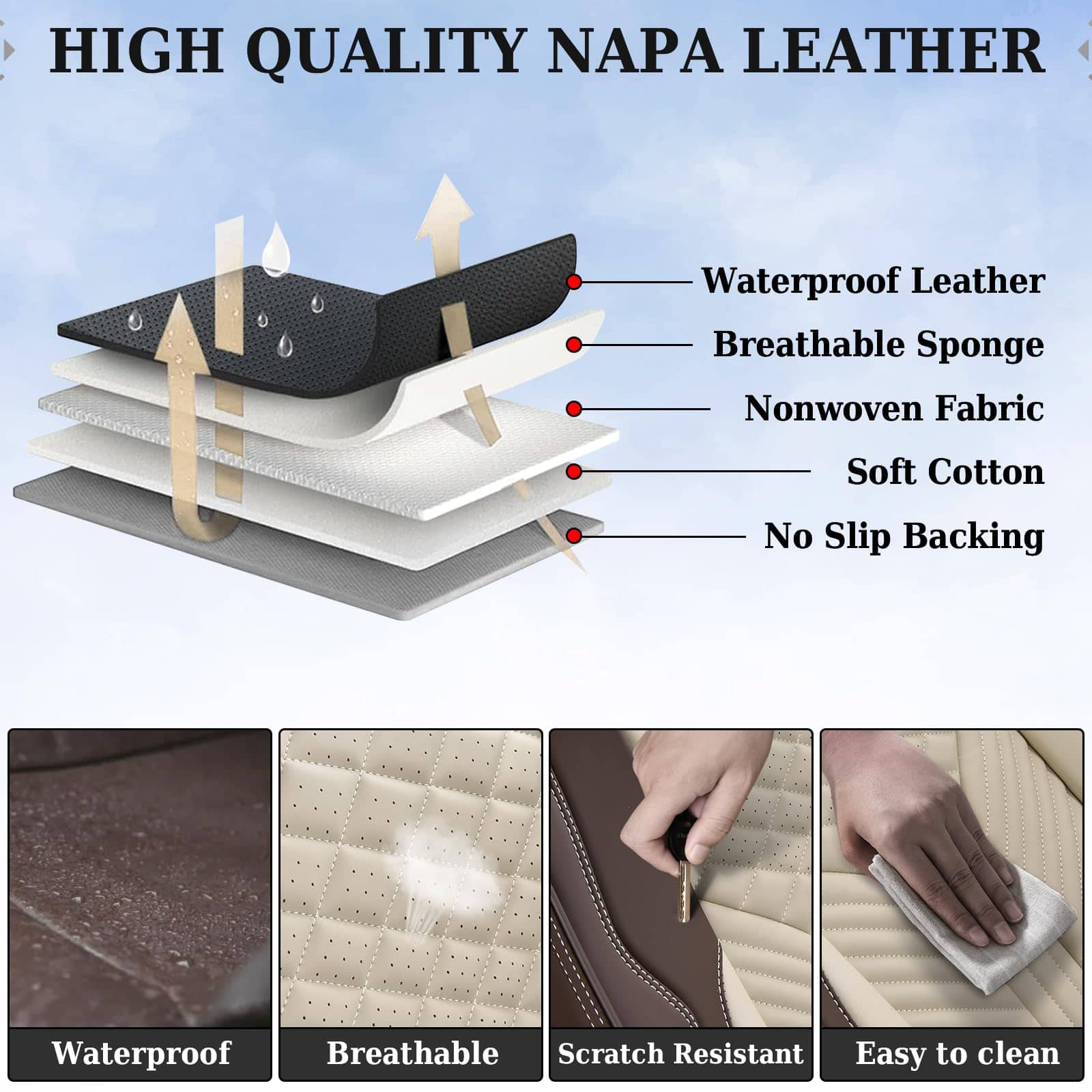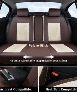 Las fundas de asiento de automóvil de cuero Coverado Juego completo son la elección perfecta para mantener sus asientos de automóvil protegidos y elegantes al mismo tiempo. Hechas de cuero Nappa perforado y cuero sintético duradero con acolchado de espuma de alta densidad de alta resistencia, estas fundas de asiento ofrecen comodidad y protección superiores. Con un ajuste universal, se adaptan a la mayoría de los camiones, furgonetas y SUVs, garantizando que cada característica automática, como los airbags, los cinturones de seguridad y el calentamiento del asiento, se mantenga funcional. La protección alrededor de los asientos del automóvil mantiene a raya las manchas, el polvo, los arañazos y otros daños, manteniendo sus asientos como nuevos. La instalación es fácil gracias a la salida reservada para airbags y cinturones de seguridad, asegurando que la seguridad se mantenga intacta. Los bolsillos en el respaldo del asiento delantero permiten almacenar objetos pequeños, manteniendo el automóvil organizado. Coverado ofrece 12 meses de reparación para el producto, demostrando su compromiso con la calidad. Cada paquete incluye 2 fundas para los asientos delanteros y 3 fundas para los asientos traseros, incluida una tapa para reposacabezas. Proteja y mantenga sus asientos de automóvil con las fundas de asiento de automóviles de cuero Coverado Juego completo.