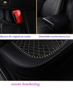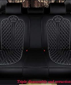 Descripción: Esta es una funda de asiento de automóvil universal, según nuestra experiencia en ventas, se adapta a más del 99% de los automóviles de 5 asientos. La cubierta de los 3 asientos traseros es desmontable (unida con cremallera), por lo que puede reclinar el asiento trasero como de costumbre, así que no se preocupe. Somos un proveedor profesional de accesorios para automóviles, tenemos más de 1000 fundas para asientos variadas, visite nuestra tienda para encontrar más. Si tiene alguna otra pregunta sobre el producto, no dude en contactarnos. AVISO: NO ES ADECUADO PARA UNA CAMIONETA PICK-UP, UN AUTO DEPORTIVO CON 2 ASIENTOS O 4 ASIENTOS, TENGA EN CUENTA. Proporcionamos instrucciones de instalación, le enviaremos un correo electrónico, contáctenos después de recibir el producto. Aceptamos devoluciones y reembolsaremos si no se ajusta a su automóvil, así que siéntase libre de pedirlo. Recibirá el paquete con instrucciones de instalación en papel, si necesita instrucciones de instalación en PDF o video. Material: Cuero de alta calidad. Color: Negro-blanco, Negro-oro, Negro-rosa, Negro-blanco lujoso, Negro-oro lujoso, Negro-rosa lujoso. Tamaño específico: Fila delantera: Longitud: 52 cm, Ancho: 48 cm, Altura del respaldo: 60 cm. Altura de la cabeza: 20 cm, Ancho del casquillo: 27 cm. Fila trasera: Longitud: 133 cm, Ancho: 45 cm, Altura del respaldo: 60 cm. Altura de la cabeza: 20 cm, Ancho del casquillo: 27 cm. Tamaño del embalaje: 55 cm, 65 cm, 25 cm. Adecuado para: automóvil de 5 asientos. Todo el año. Paquete: 2 piezas de respaldo delantero, 2 piezas de cojín delantero, 2 piezas de asiento trasero, 2 piezas de respaldo trasero, reposabrazos trasero, 2 almohadas lumbares, 2 almohadas.
