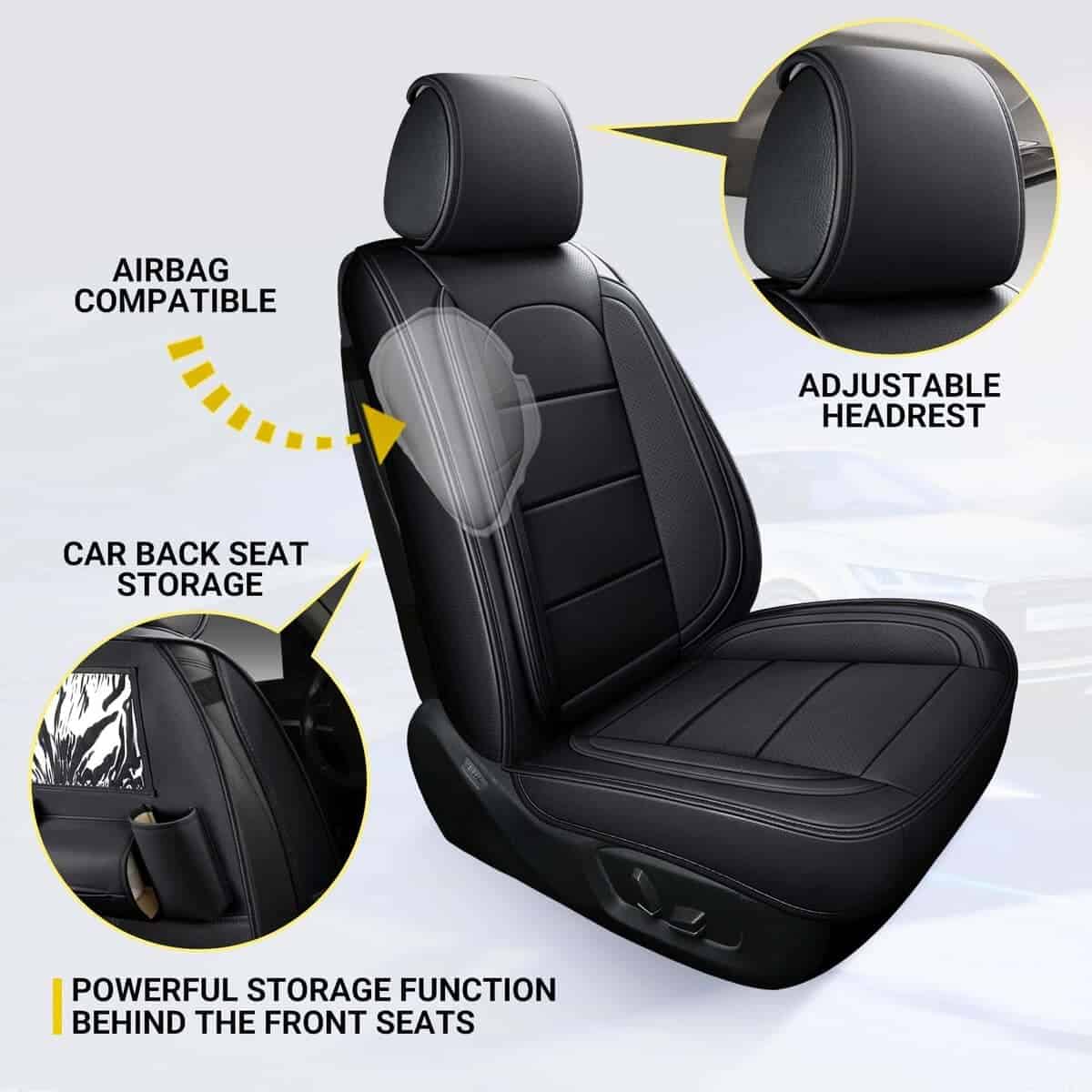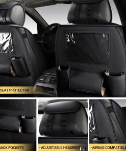 Fundas de asiento de coche de cuero AOOG con organizador de