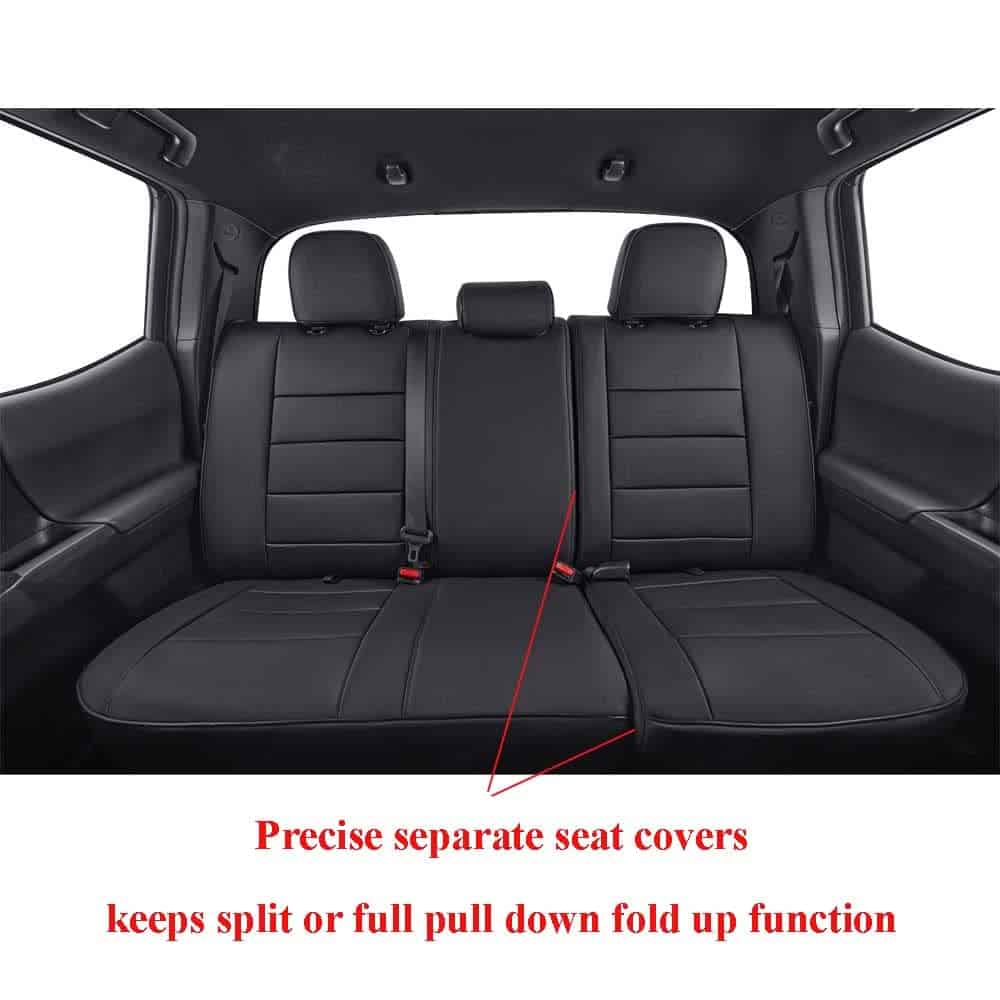 Fundas de asiento de coche EKR Custom Fit Tacoma para Toyota Tacoma 2016 2017 2018 2019 2020 2021 2022 2023 Doble Cabina/Crew Cab – Juego Completo, Cuero(Negro)