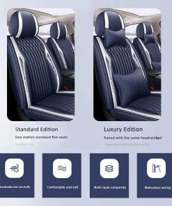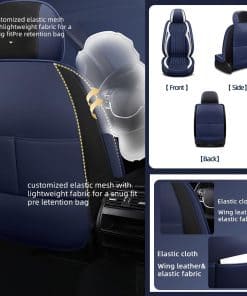 Nuestras fundas de asiento delantero y trasero son fáciles de instalar y pueden prevenir efectivamente el desplazamiento. La parte lateral de la funda de asiento de cuero queda expuesta, Preservando suficiente espacio para bolsas de aire e inserciones de seguridad para aumentar la seguridad y confiabilidad, ¡así que las bolsas de aire nunca interpondrán en tu camino, de manera que tu antigua funda de asiento no se ensucie! Las fundas de asiento de cuero son adecuadas para todas las estaciones, se pueden usar con asientos calefactables, son fáciles de cuidar y se pueden lavar con un paño suave húmedo, ¡para que tus fundas de asiento originales no se ensucien! Nuestras fundas de asiento de coche se dividen en tres tipos: 1. Fundas de asiento de versión estándar: Funda para asiento principal del conductor y funda para asiento del pasajero, funda para asiento de la segunda fila, instrucciones de instalación, ¡accesorios para asientos de coche! 2. Fundas de Asiento Deluxe: Funda para asiento principal del conductor y funda para asiento del pasajero (incluyendo reposacabezas y almohada lumbar), funda para asiento de la segunda fila, instrucciones de instalación, ¡accesorios para asientos de coche! Las fundas de asiento son grandes y deben plegarse o enrollarse, puede haber un ligero pliegue, El pliegue desaparecerá automáticamente después de un período de uso, ¡por favor, comprenda! Si tienes alguna pregunta sobre la funda de asiento, o no estás seguro de tu marca, modelo, año, por favor contáctanos para brindarte ayuda efectiva, Tu satisfacción es la mayor motivación. ¡Esperamos tu llegada!