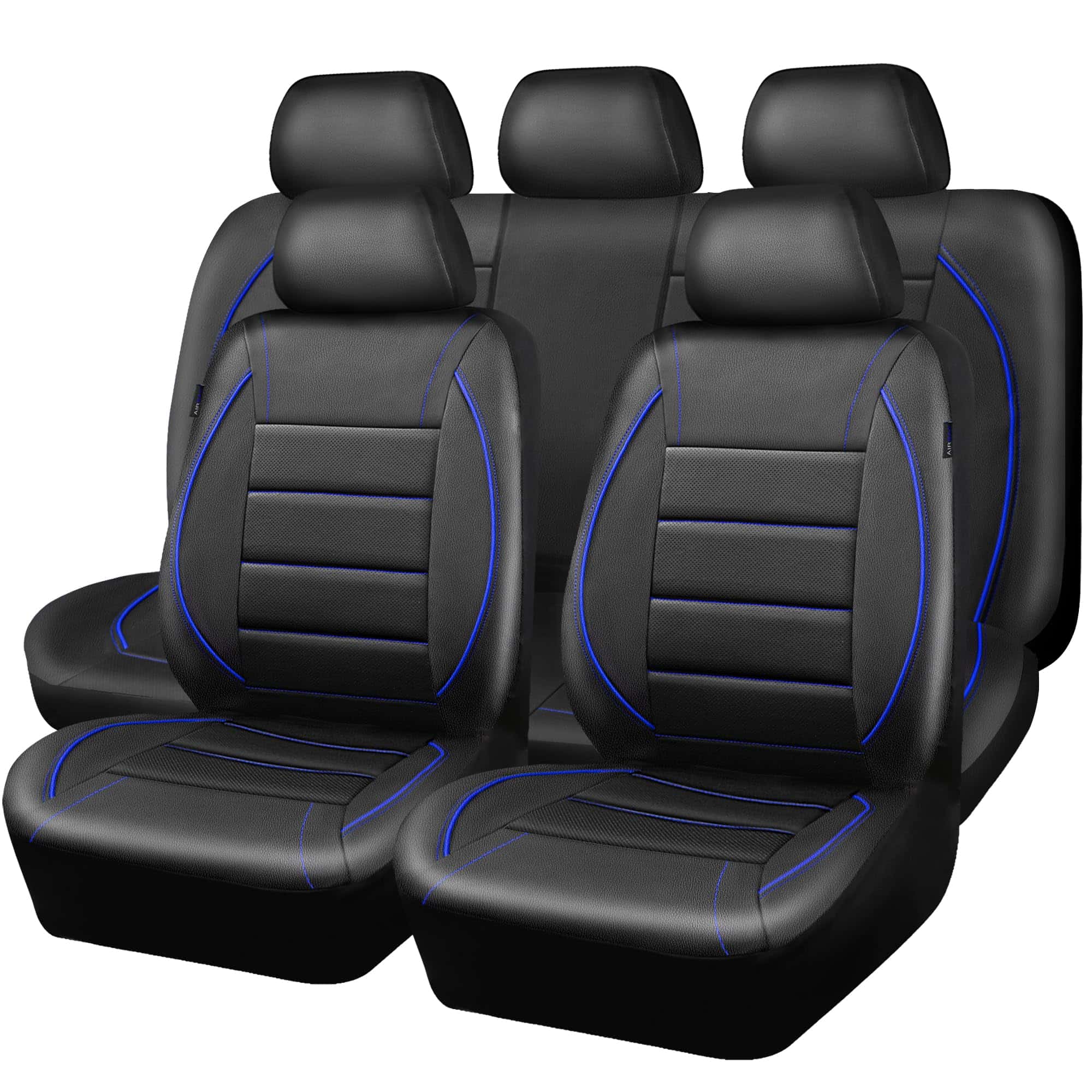 2. MATERIAL DE CUERO DE ALTA CALIDAD RESISTENTE A LAS ARRUGAS – Material de Protección del Medio Ambiente: Cuero PU de Lujo con Esponja Compacta Super Suave de 5mm. Protege tus fundas de asiento del coche del polvo, los arañazos y posibles daños. 100% LAVABLE Y TRANSPIRABLE.