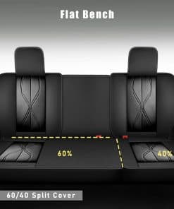 Fundas de Asiento de Piel Sintética Impermeables LINGVIDO Compatible con Dodge Ram 1500 2500 3500 2009-2024 Protector de Cojín de Asiento para Camioneta Pickup Crew Quad Cab con Banqueta Dividida 40/60 (Negro, Juego Completo Respaldo Plano)