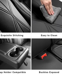 – Material de piel sintética de primera calidad: La piel sintética de alta calidad hace que el producto sea duradero, de moda y protege los asientos originales del polvo, la suciedad, el pelo de perro y los rayos UV. Resistente al desgaste y fácil de limpiar.