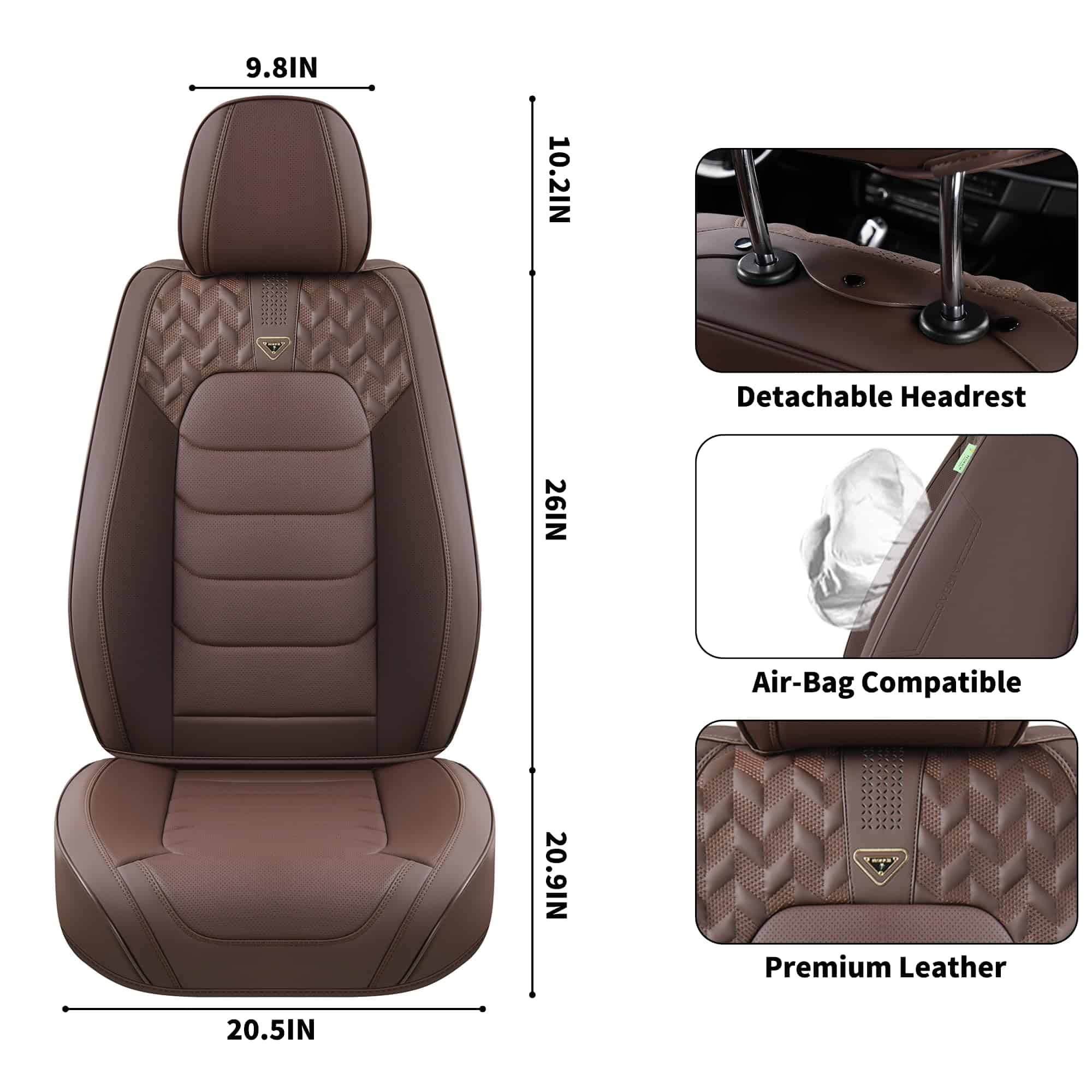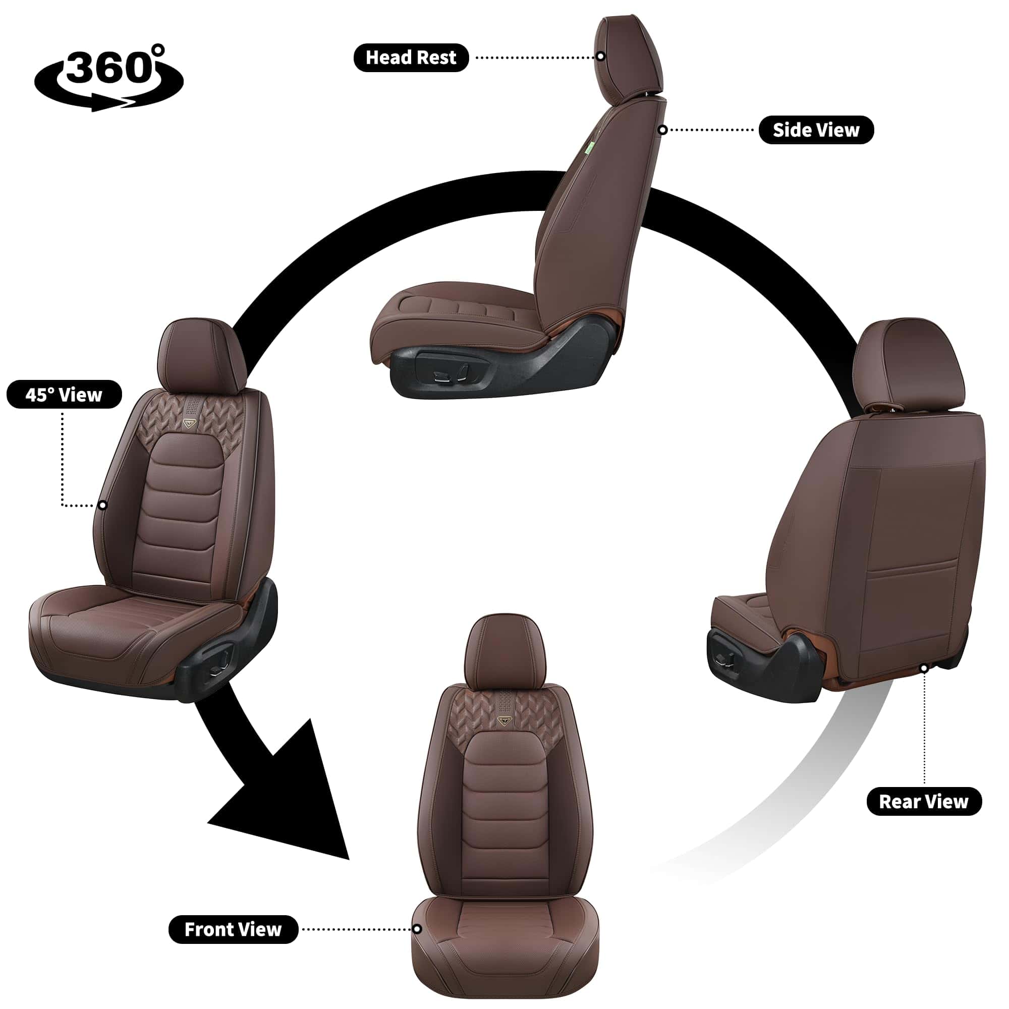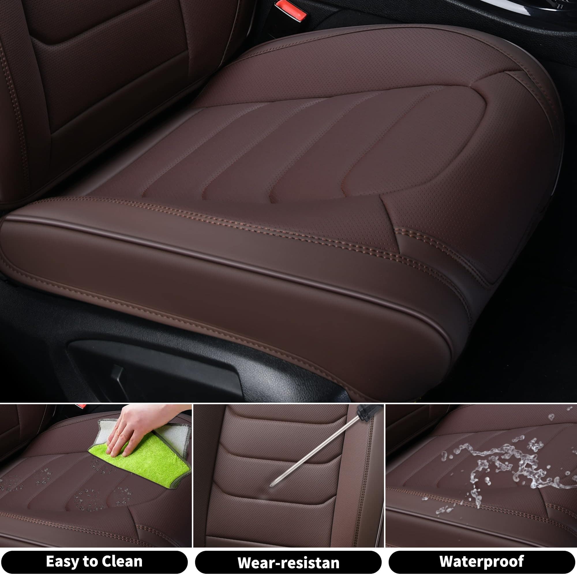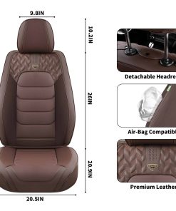 1. : La funda de asiento automotriz está hecha de cuero artificial de alta calidad y está fabricada con tecnología de compuesto de múltiples capas. Es suave y cómoda, impermeable y transpirable, y puedes obtener una mejor experiencia de conducción. La funda de asiento de cuero sintético transpirable adopta esponja de rebote que ofrece un toque cómodo y una excelente capacidad de recuperación para mantener su forma. 2. & : Nuestras fundas de asiento universales con un diseño visual único son totalmente compatibles con cualquier airbag incorporado. Y todas las hebillas de cinturón de seguridad están completamente expuestas para su uso diario seguro. Los laterales de los asientos delanteros cuentan con bolsillos de almacenamiento. Cubriendo tus necesidades de almacenamiento, combinamos estilo con una estética deportiva para hacer que tu viaje sea más agradable. 3. : Las fundas de asiento de lujo adoptan un diseño desmontable, lo que hace que la limpieza sea más conveniente, y se puede limpiar solo con un paño húmedo mientras ofrece protección para la tapicería de su camioneta. Para su comodidad, las instrucciones de instalación están incluidas en el paquete del producto. Simplemente sigue las instrucciones de instalación, generalmente tarda de 15 a 25 minutos en completar la instalación. 4. : Nuestros protectores de asiento de coche están diseñados para adaptarse a la mayoría de los vehículos, incluidos automóviles, camiones, furgonetas y SUVs. Si no estás seguro de si el vehículo es adecuado para ti, por favor contáctanos a tiempo. Nuestro equipo de servicio al cliente siempre estará en línea para asistirte. 5. : Las fundas para asientos de coche FLORICH vienen con una garantía de 12 meses. Cada paquete incluye 2 fundas para asientos delanteros, 2 fundas para asientos traseros y un manual de usuario. Antes de instalar, por favor verifica el video en la página y selecciona el método de instalación adecuado.