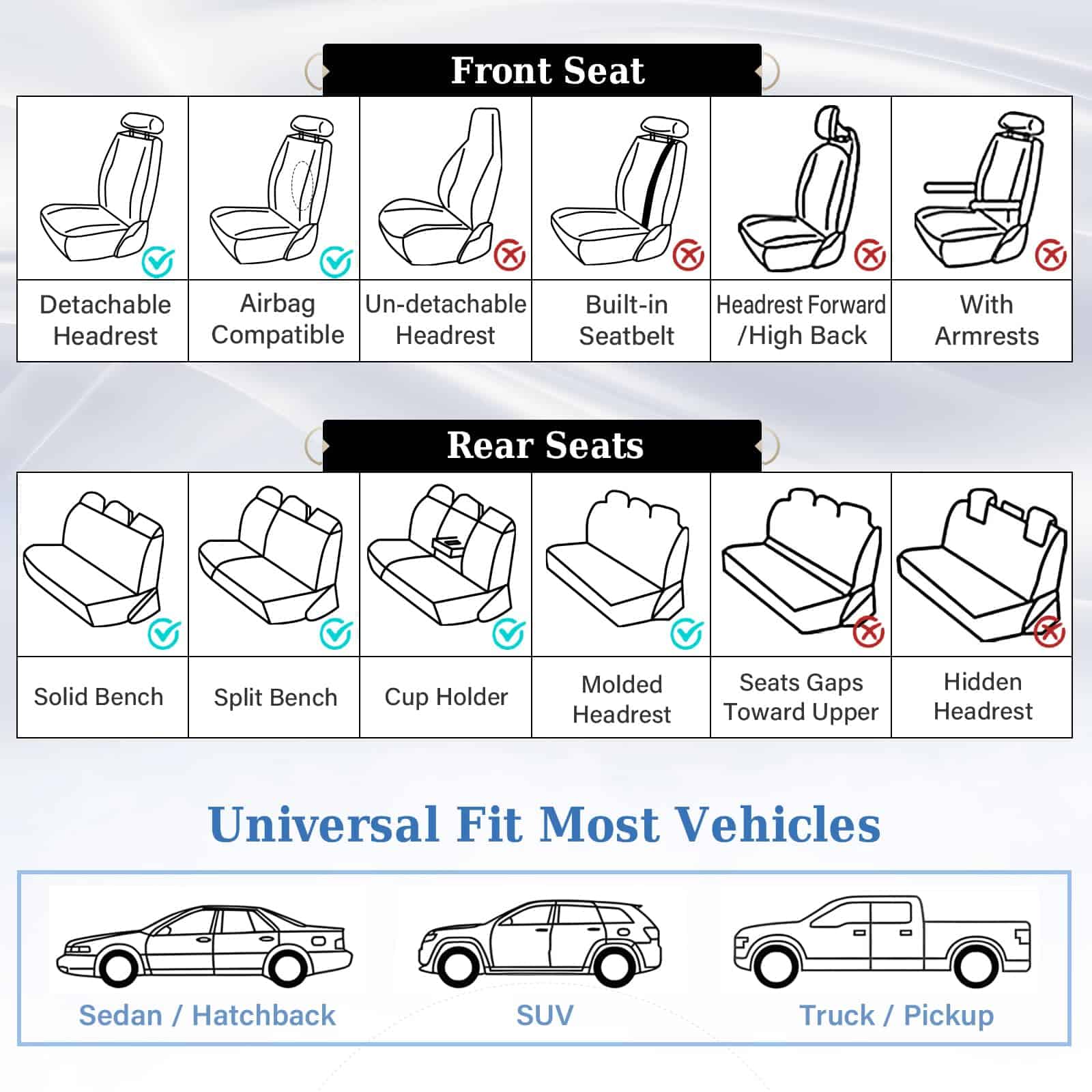Fundas de Asiento para Automóvil Coverado Juego Completo, 5
