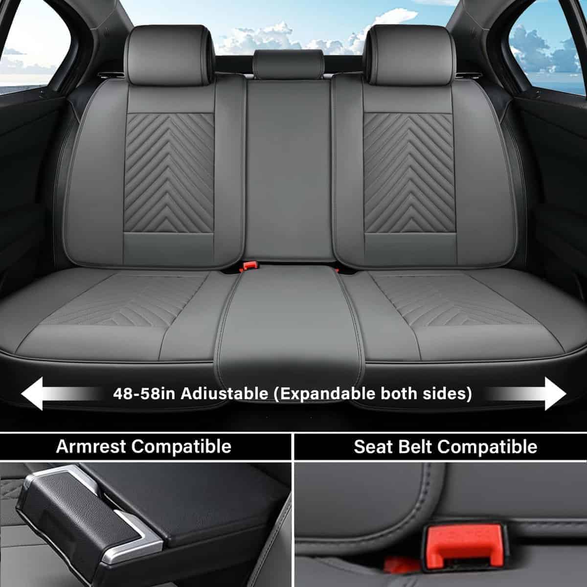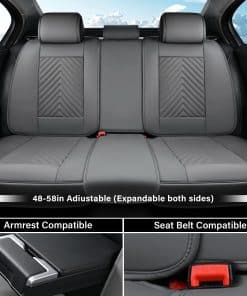 Coverado Seat Covers son perfectas para aquellos que desean proteger y mejorar el aspecto de los asientos de su automóvil. Fabricadas con piel sintética de alta calidad, estas fundas de asiento proporcionan durabilidad y comodidad, brindando una protección duradera para sus asientos. El diseño universal de las fundas de asiento garantiza un ajuste perfecto en una amplia variedad de modelos de automóviles, lo que permite una fácil instalación y un ajuste óptimo. Las fundas de asiento trasero son ajustables de 48 a 58 pulgadas de longitud para adaptarse a la mayoría de los vehículos, incluidos sedanes, camionetas, SUVs, crossovers, convertibles y furgonetas. La cobertura completa de las fundas de asiento mantiene intactas las características originales de los asientos, como airbags, cinturones de seguridad, reposabrazos y ajustes de asiento. Además, el material suave y cómodo de las fundas de asiento se complementa con un diseño de soporte lumbar para una experiencia de conducción y viaje más placentera. La instalación es sencilla gracias a la silicona antideslizante que fija las fundas de asiento firmemente en su lugar y a la superficie resistente al agua y la suciedad que facilita la limpieza y el mantenimiento. Con varios colores disponibles, puede personalizar el aspecto de su automóvil según sus preferencias. Cada paquete de fundas de asiento incluye fundas delanteras, fundas traseras y un manual detallado para facilitar la instalación. Si tiene alguna duda, nuestro equipo de atención al cliente estará encantado de ayudarle.