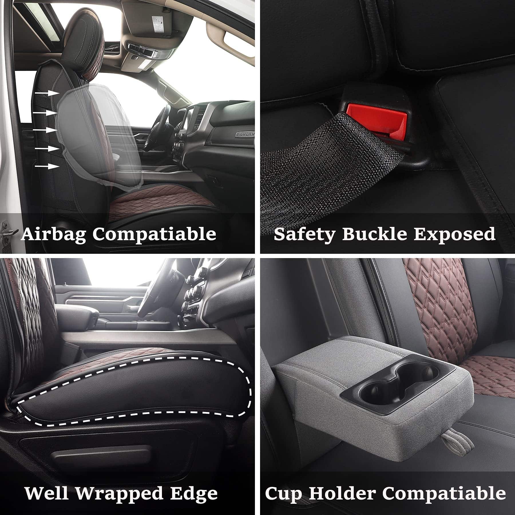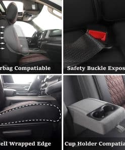 Esta funda de asiento para automóvil JOJOBAY está diseñada específicamente para adaptarse a varios modelos de camionetas Dodge Ram, incluidos los trims Big Horn, Laramie, Limited, Lone Star, Longhorn, Rebel, Tradesman, SLT, Sport, y muchos más. Está hecha con cuero PU de alta calidad que es duradero, suave al tacto, impermeable y fácil de limpiar. La capa interna de esponja gruesa proporciona una gran comodidad y soporte, mientras que la capa inferior de silicona antideslizante garantiza que la funda se mantenga en su lugar sin resbalar. Su diseño especial permite un ajuste perfecto que no interfiere con la funcionalidad de los cinturones de seguridad, airbags, asientos calefactables y otras características de seguridad del vehículo. La tecnología de bordado en 3D agrega un toque de elegancia y sofisticación a las fundas, haciéndolas lucir hermosas y de alta calidad. Con una garantía de calidad del producto, puedes estar seguro de que estás adquiriendo un producto confiable que te brindará años de uso satisfactorio. ¡No dudes en mejorar el aspecto y la comodidad de tu camioneta Dodge Ram con estas fundas de asiento para automóvil JOJOBAY!