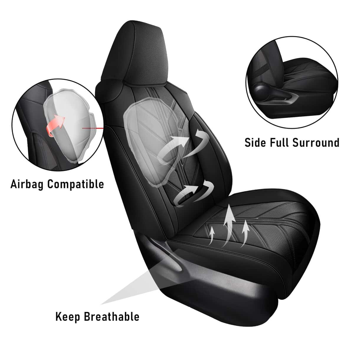 El juego de fundas de asiento personalizadas LINGVIDO para Toyota RAV4 2019-2025 es perfecto para aquellos que desean proteger y embellecer el interior de su automóvil. Este juego incluye 2 fundas para los asientos delanteros y una funda para el asiento trasero, diseñadas específicamente para adaptarse a los modelos LE, XLE, XLE Premium y Limited de Toyota RAV4 (No es compatible con Hybrid, Prime, Adventure, TRD-OFF). Las fundas están hechas de material de cuero PU de alta calidad, resistente al desgaste, elegante y cómodo al tacto. Además, cuentan con características especiales como la parte superior antirrayas, la parte inferior antideslizante y prácticos bolsillos para revistas, libros y pañuelos. Las fundas para los asientos se instalan fácilmente siguiendo la guía incluida en la bolsa o viendo el video de instalación proporcionado. Con estas fundas, puedes mantener la funcionalidad completa de tus asientos, sin afectar el uso del airbag, apoyabrazos, cinturón de seguridad y ajustes del asiento. Disfruta de un viaje cómodo y con estilo en tu Toyota RAV4 con las fundas de asiento personalizadas LINGVIDO.