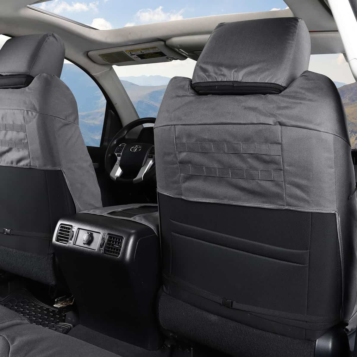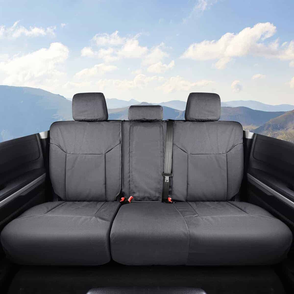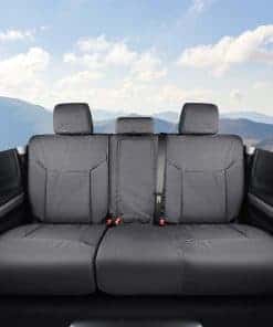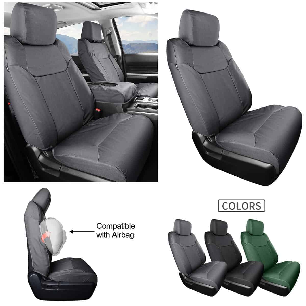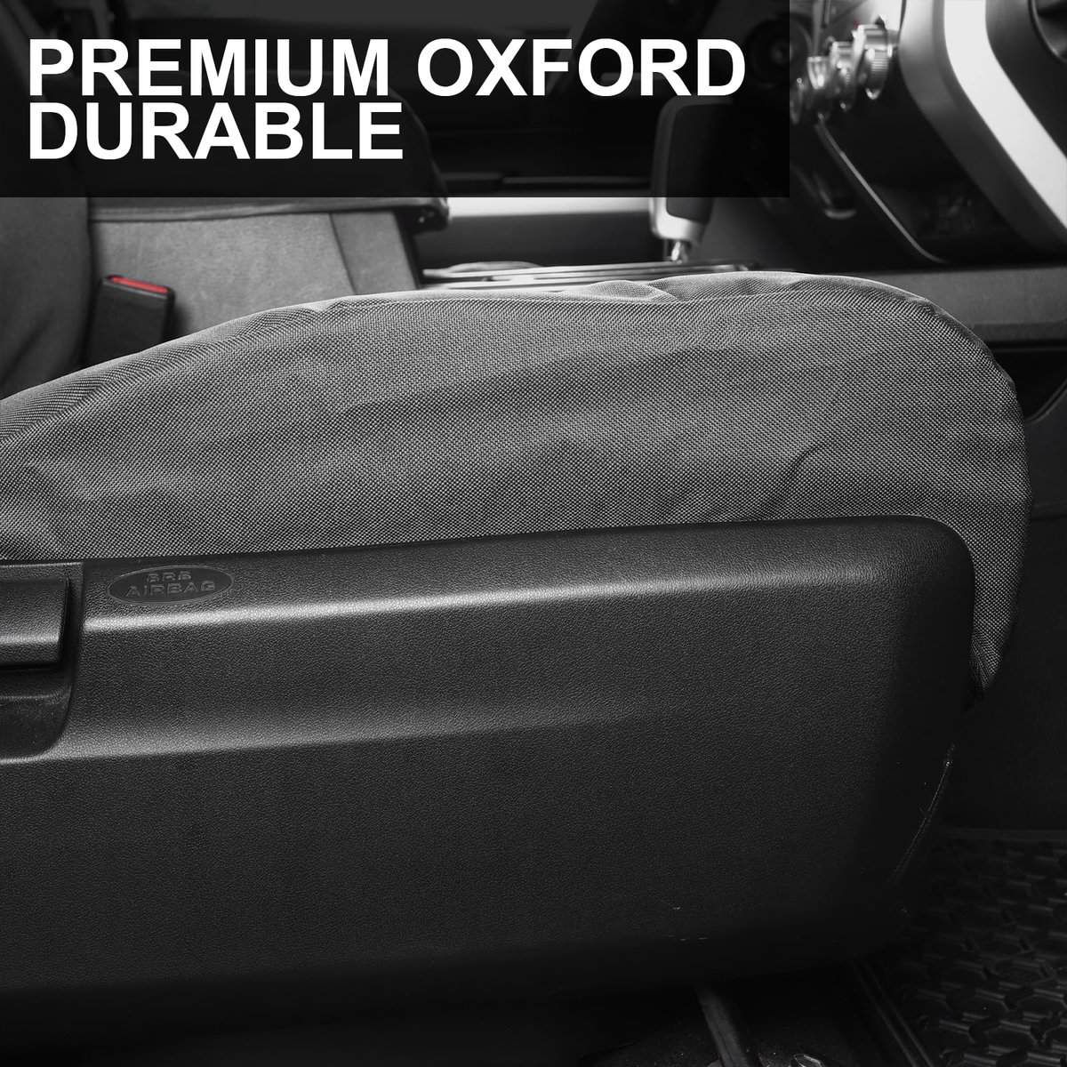 4. Material de alta calidad – Las fundas de asiento tipo cubo están hechas del mejor oxford con una textura suave y acogedora. El material de abajo las mantiene en su lugar. El grosor inusual y el material transpirable las convierten en el juego de fundas de asiento de coche más duradero y cómodo que haya existido.
