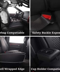 Esta funda de asiento para carro de JOJOBAY está específicamente diseñada para adaptarse a las camionetas Dodge Ram 2009-2025 1500/2500/3500 Pick-up Truck, incluidas las versiones de Cabina Clásica, Cabina de Tripulación, Cabina Regular, Cabina Quad, Cabina Mega. Con un material premium de cuero PU de alta calidad, esta funda es impermeable, suave al tacto y fácil de limpiar. El diseño especial garantiza la seguridad al no interferir con el uso de las funciones del asiento, como los cinturones de seguridad e airbags. La instalación es sencilla y no se requieren herramientas. La tecnología de bordado en 3D le proporciona a esta funda un aspecto elegante y sofisticado. JOJOBAY ofrece garantía de calidad y la posibilidad de devolver el producto dentro de los primeros 30 días si no estás satisfecho. ¡Haz que tu camioneta Dodge Ram luzca como nueva con estas fundas de asiento de alta calidad!