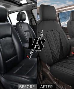 3. Cobertura completa y diseño de moda: Las fundas de asiento para F150 cuentan con un diseño de cobertura completa sin revelar ningún lado antiestético, envuelven eficazmente todo el asiento del automóvil y proporcionan una apariencia renovada. El patrón de diamantes le da a sus asientos viejos o rayados un aspecto fresco y moderno al tiempo que protege contra derrames y humedad.