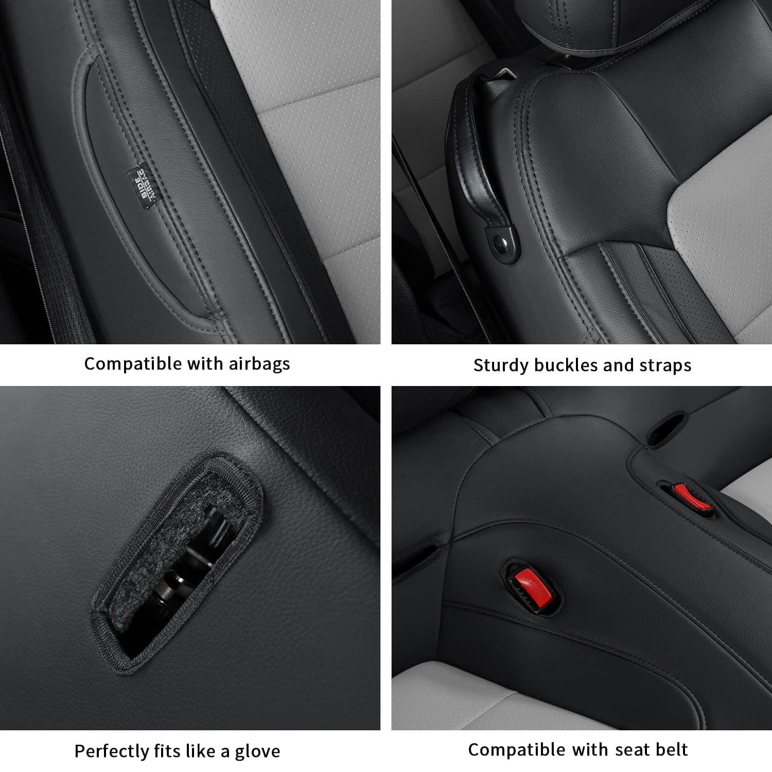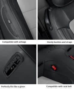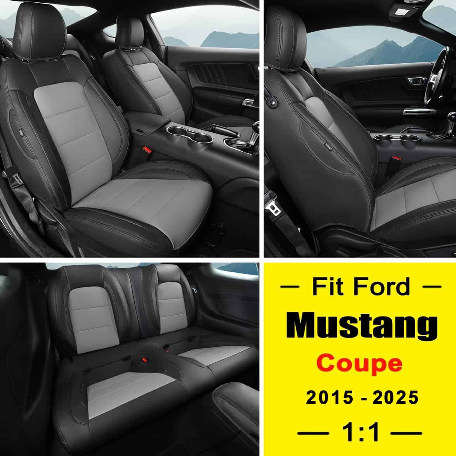Un juego completo de fundas de asiento a medida para Ford Mustang Coupe Hardtop 2015-2025, que se ajustan perfectamente a los asientos originales como un guante. Es una solución perfecta y rentable para proteger el interior del coche. Estas fundas de asiento para coche están hechas de piel sintética suave, que es cómoda al tacto, transpirable, duradera y fácil de limpiar. La piel perforada en la parte del cojín es compatible con las funciones de calefacción y refrigeración del asiento original. Estas fundas de asiento para Mustang coupe hardtop están diseñadas a la medida del asiento original, cubriendo con precisión los asientos originales, protegiéndolos del desgaste, las manchas y los pelos de animales, y dándole a su interior del coche un aspecto nuevo. La funda de asiento está diseñada según el pespunte del asiento original del coche, sencilla y elegante, y combina perfectamente con el interior de su coche. Para una instalación sencilla, por favor, vea cuidadosamente el video de instalación antes de instalar. Las fundas de asiento personalizadas GIANT PANDA con una solapa de paso, velcro, hebillas resistentes y correas para un ajuste más seguro y fácil instalación. Si tiene alguna pregunta, por favor contáctenos para obtener más ayuda.
