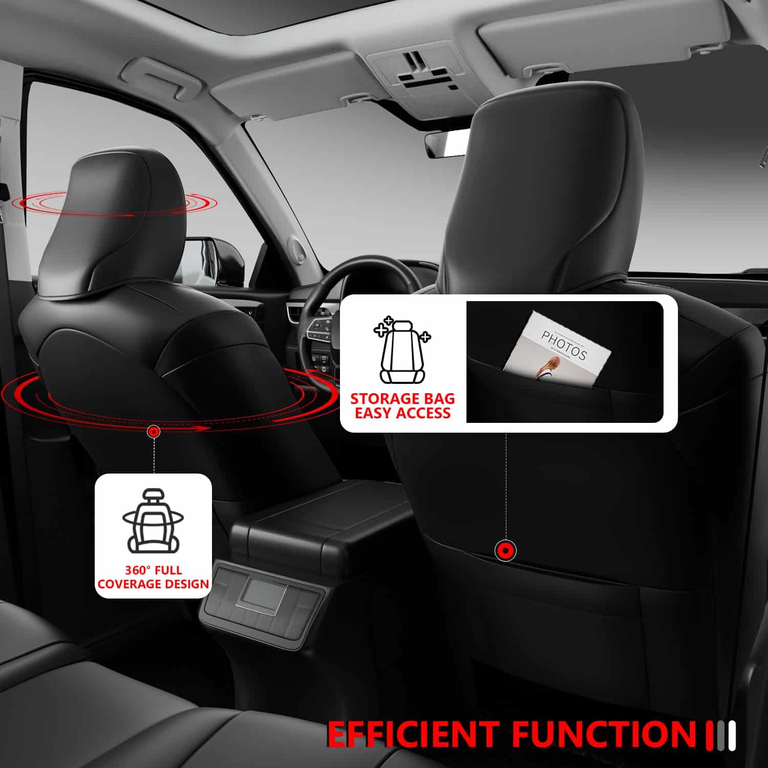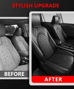 2. Material de alta calidad: Nuestras fundas de asiento están hechas de cuero Pu de alta calidad. Son impermeables, resistentes al desgaste y sin olor, y se pueden limpiar solo con agua y una toalla. La permeabilidad al aire del cuero PU es muy buena y no afectará la función de calefacción del asiento.
