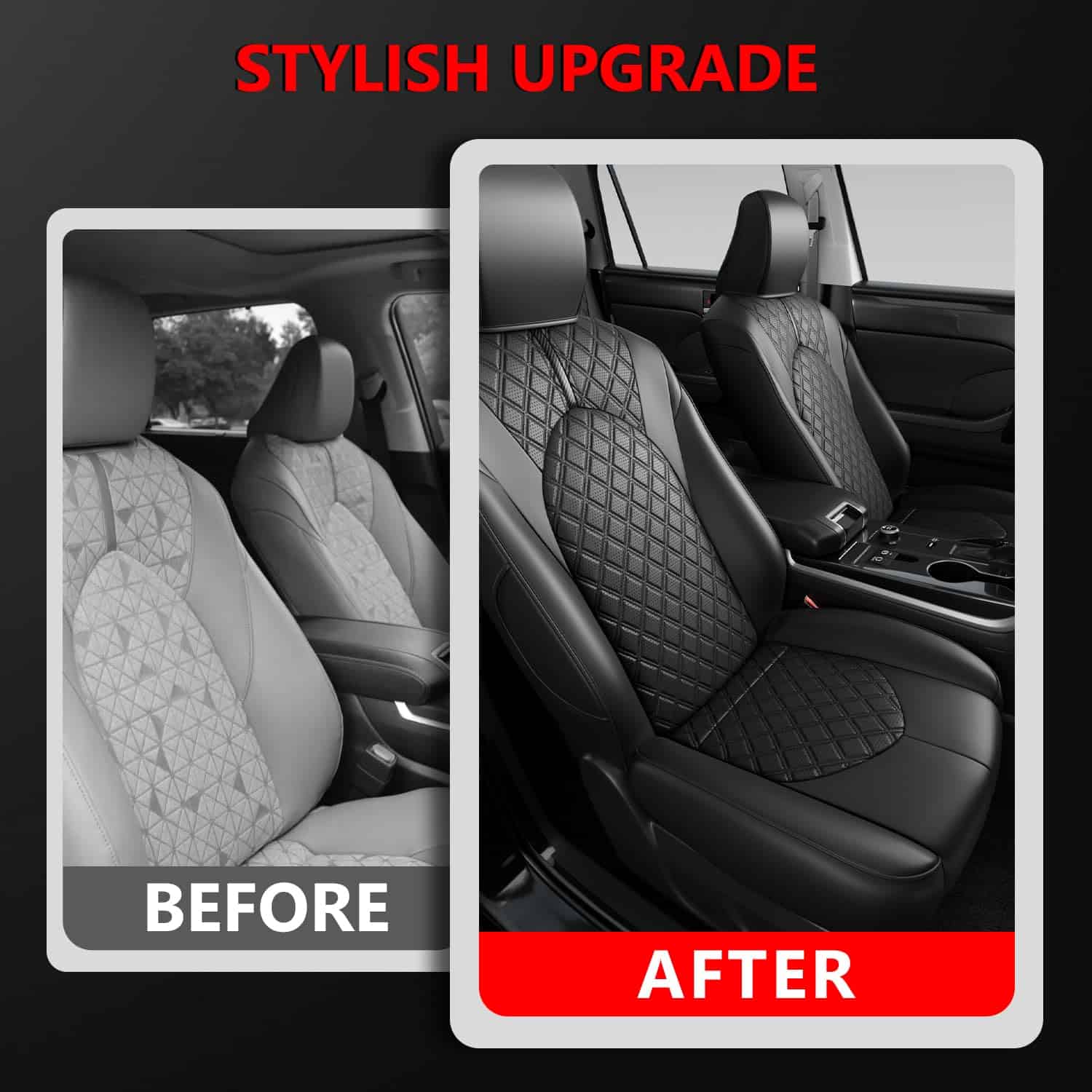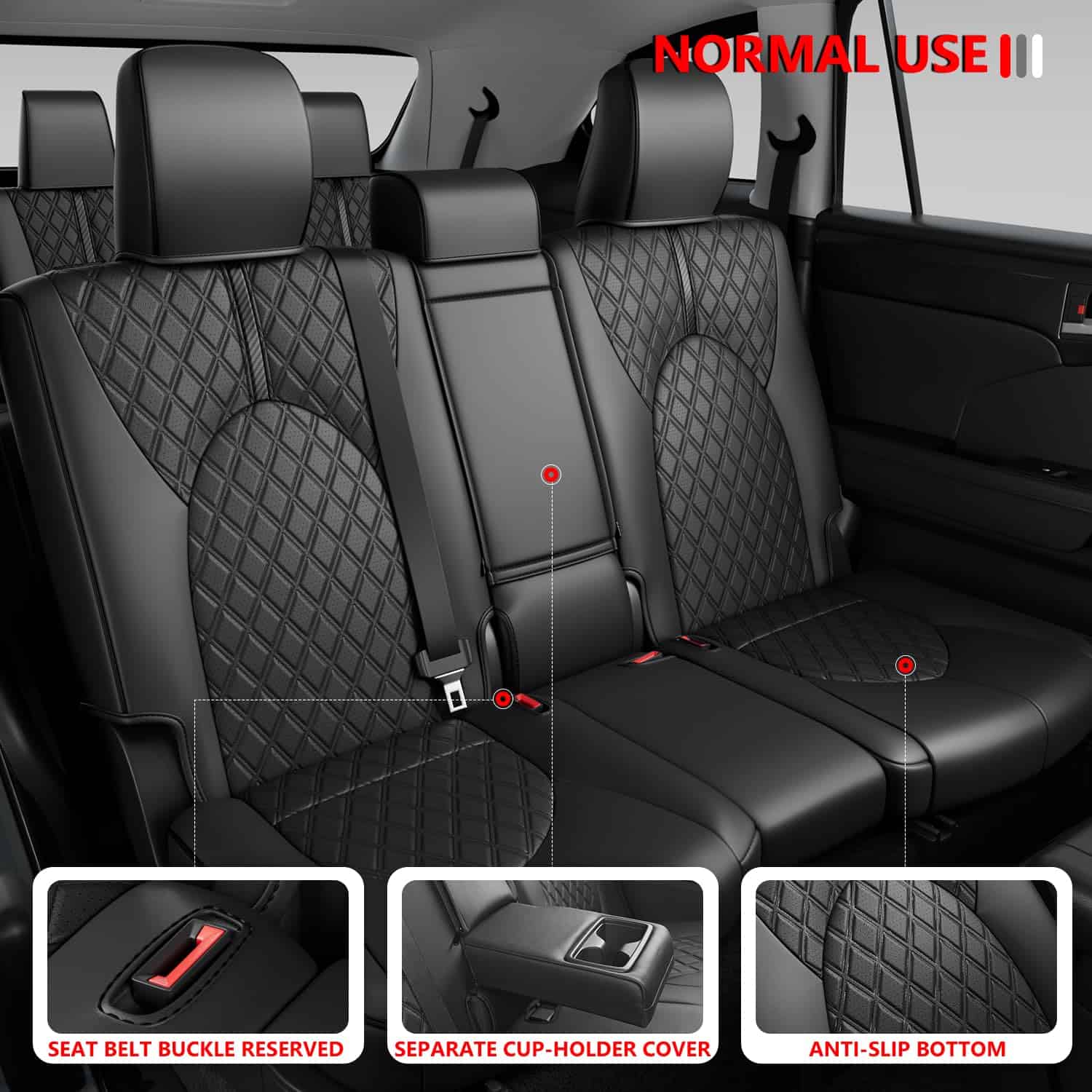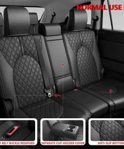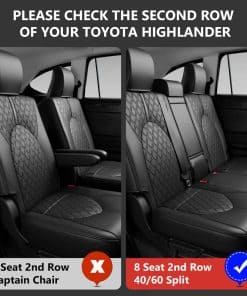 1. Ajuste exclusivo: Las fundas de asiento son compatibles con Toyota Highlander 2020-2024 de 8 asientos con segunda fila dividida 40/60, por favor revise su segunda fila y elija el tamaño correcto.