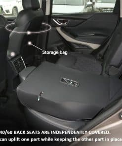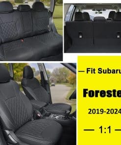 Conjunto completo de fundas de asientos a medida para Subaru Forester 2019-2024 que se ajustan perfectamente a los asientos originales como un guante. Esta es una solución perfecta y económica para proteger el interior del coche. Estas fundas de asientos para coche están hechas de cuero sintético suave, que es cómodo al tacto, transpirable, duradero, resistente al agua y fácil de limpiar. Las fundas de asiento completas están estrictamente personalizadas de acuerdo con los tamaños de los asientos originales, cubriendo con precisión los asientos originales, protegiéndolos del desgaste, las manchas y el pelo de los animales, y brindando a su interior de coche un nuevo aspecto. Tanto la funda del asiento delantero como la del asiento trasero muestran una rica visión estereoscópica con un diseño acolchado en forma de diamante y decoración de costuras, simple y elegante, y combinan perfectamente con el interior de su coche. Para una instalación fácil, por favor, vea cuidadosamente el video de instalación antes de instalar. Las fundas de asientos personalizadas GIANT PANDA cuentan con una solapa de paso, Velcro, hebillas robustas y correas para un ajuste más apretado, seguro y una instalación más fácil. Si tiene alguna pregunta, por favor contáctenos para obtener más ayuda.