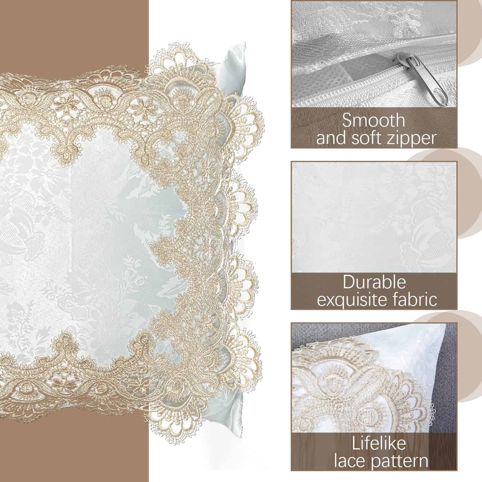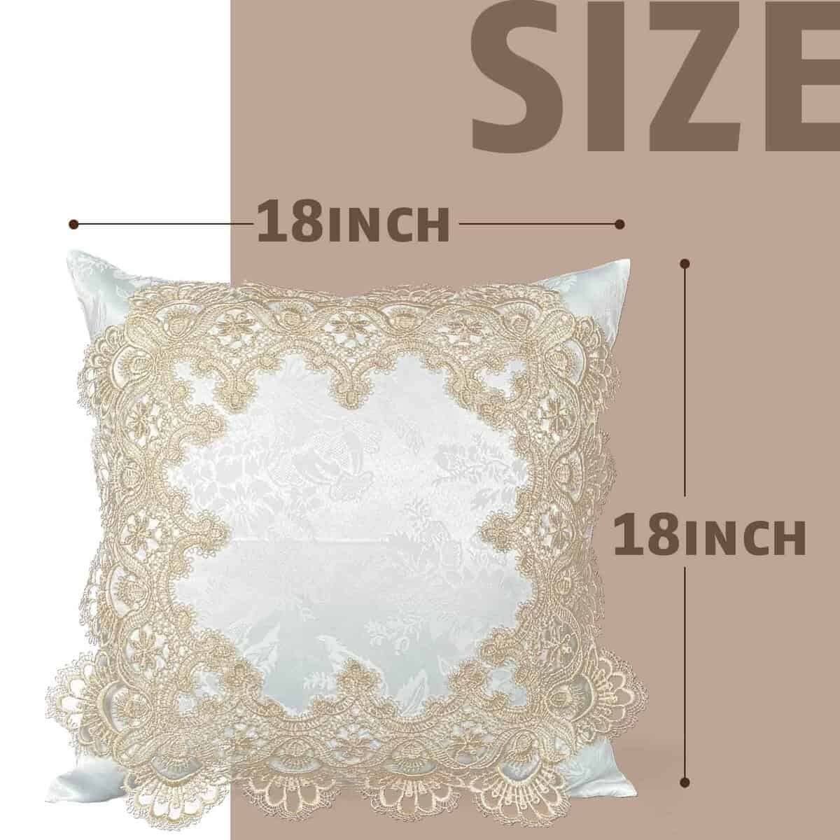 Set de 2 fundas de cojín que se ajustan a un inserto de 18 x 18 pulgadas. Las fundas no incluyen el inserto o relleno. Están fabricadas en 100% poliéster, son suaves y respetuosas con la piel, sin decoloración ni abrasión. El cierre de cremallera suave coordinado con el color facilita el proceso de rellenar las almohadas. Las fundas destacan por su bordado de encaje de alta calidad que no se caerá después de lavarlas. El bordado floral realista mejora rápidamente la atmósfera festiva del hogar y aporta un aspecto fresco al sofá, cama, dormitorio, sala de estar, jardín, silla, entre otros espacios. Fabricadas en poliéster lavable a máquina, resistentes a múltiples lavados. No se debe usar lejía y se recomienda secar a baja temperatura. El tejido es cómodo y suave al tacto, seguro para niños y mascotas, sin problemas de decoloración, decoloración o deshilachado. Nuestro compromiso es satisfacer las expectativas del cliente y nuestro servicio está disponible para ayudarte a resolver cualquier problema postventa.