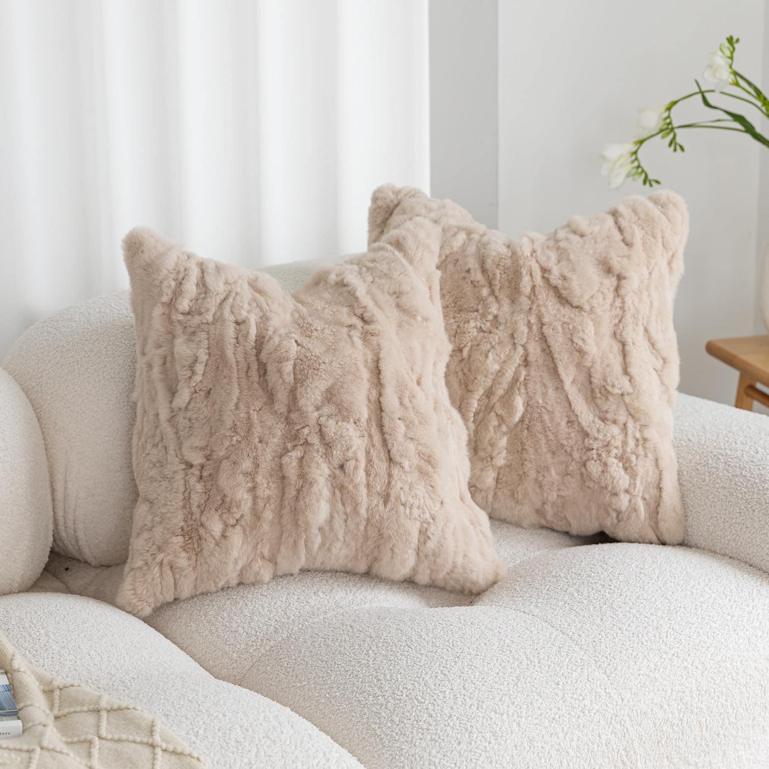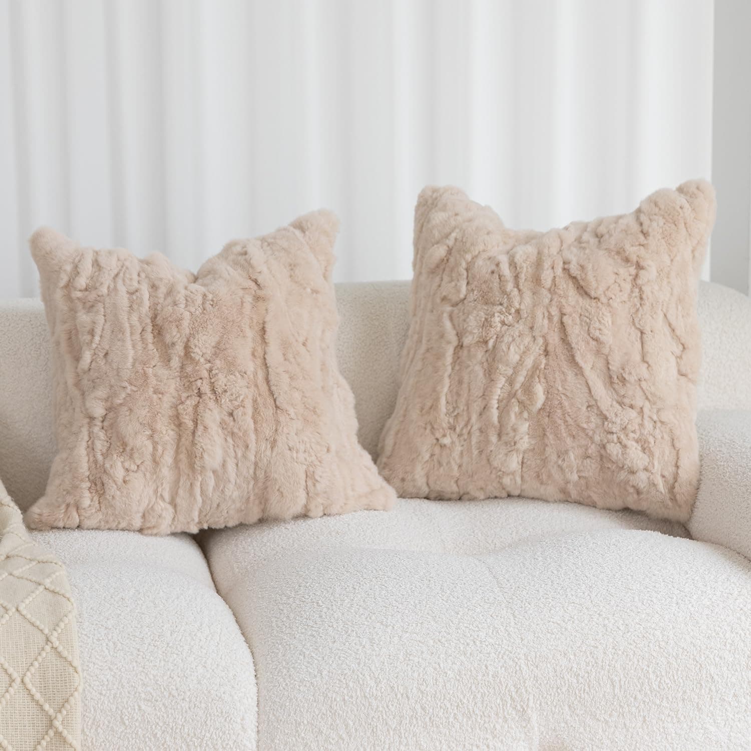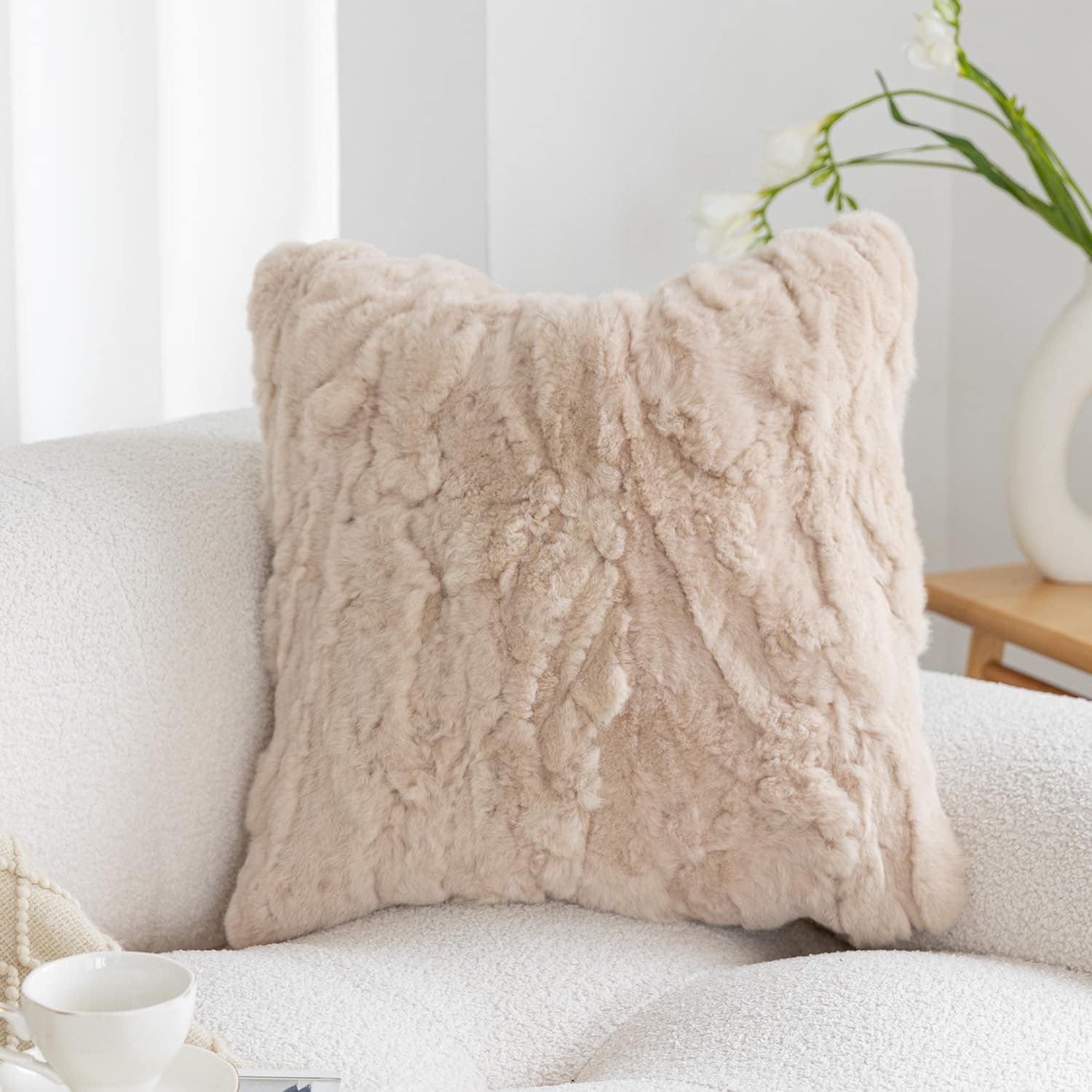 Fundas de cojín de piel de conejo genuina Rose Feather
