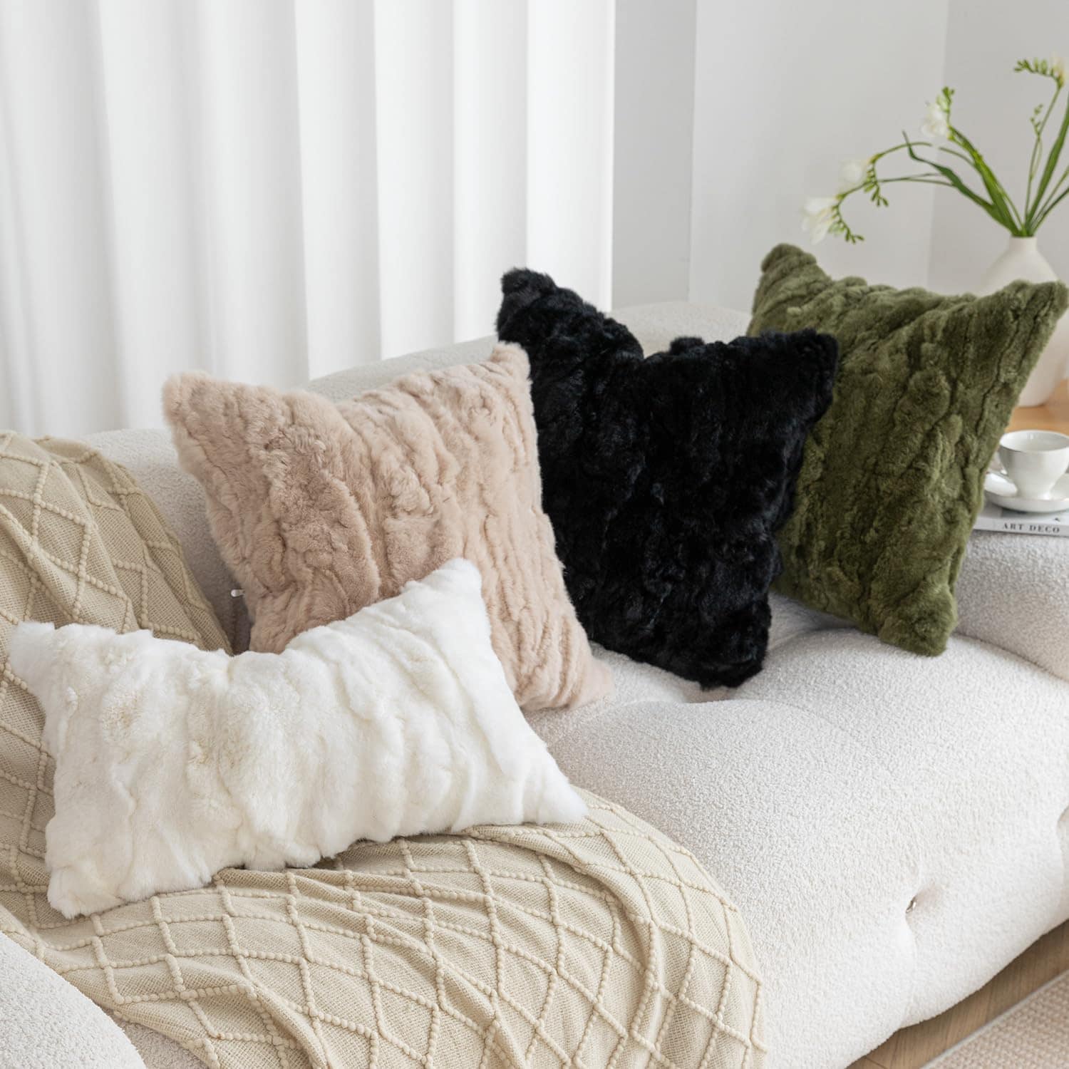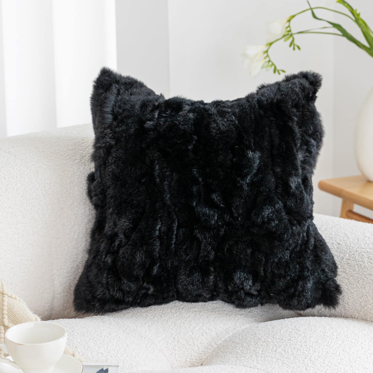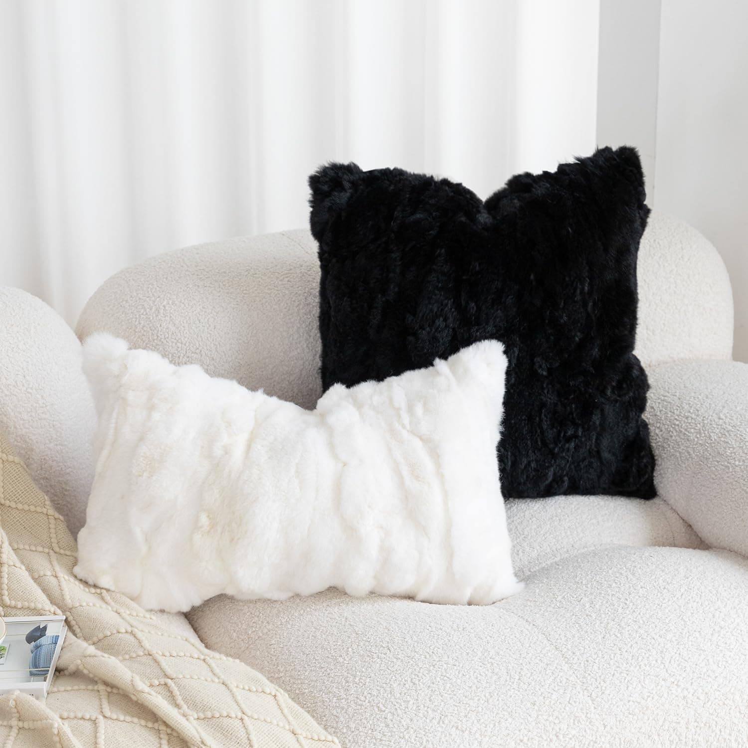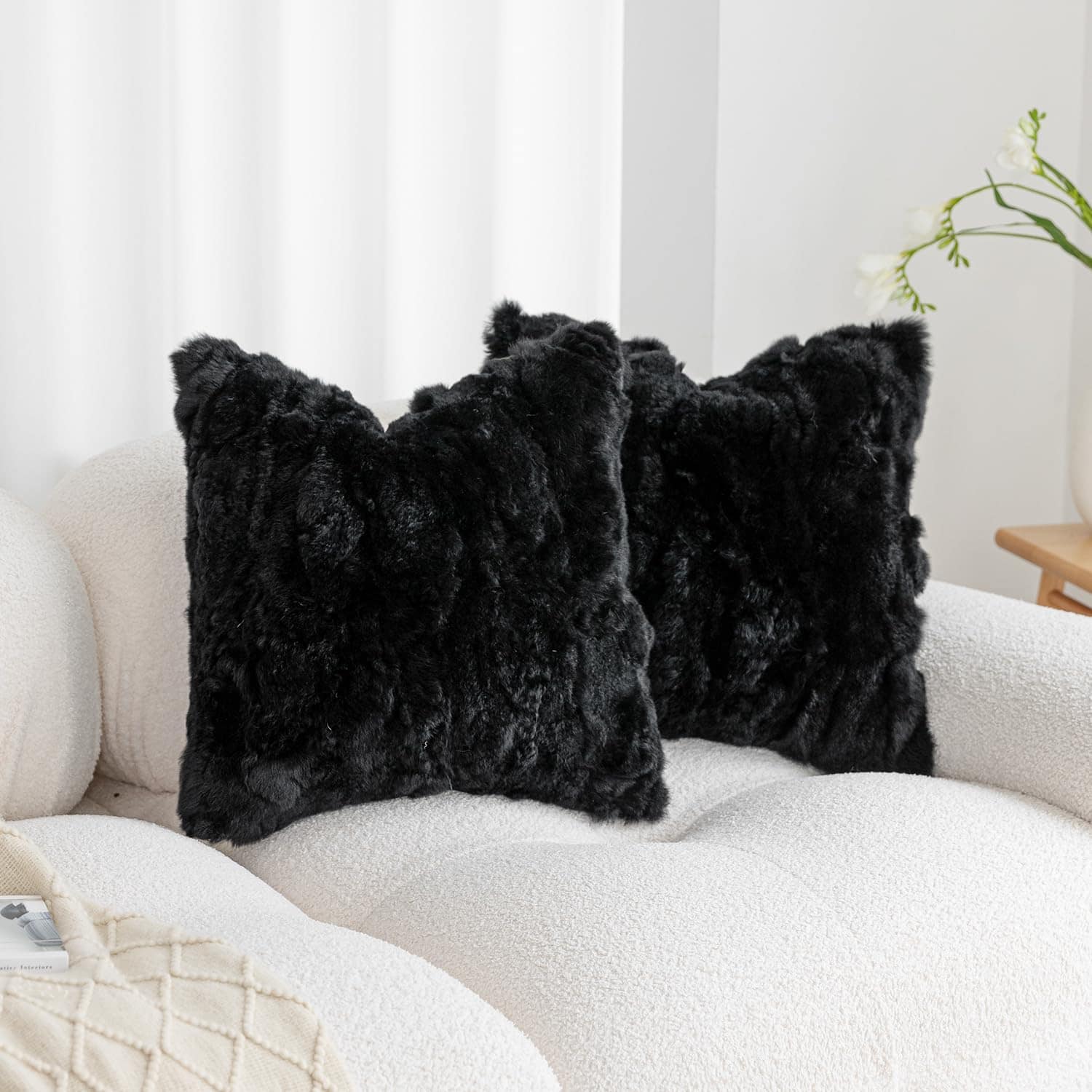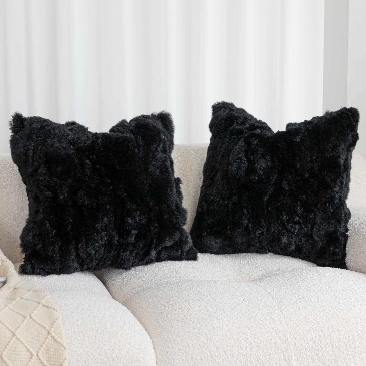 Fundas de Cojín de Piel de Conejo Genuino ROSE FEATHER