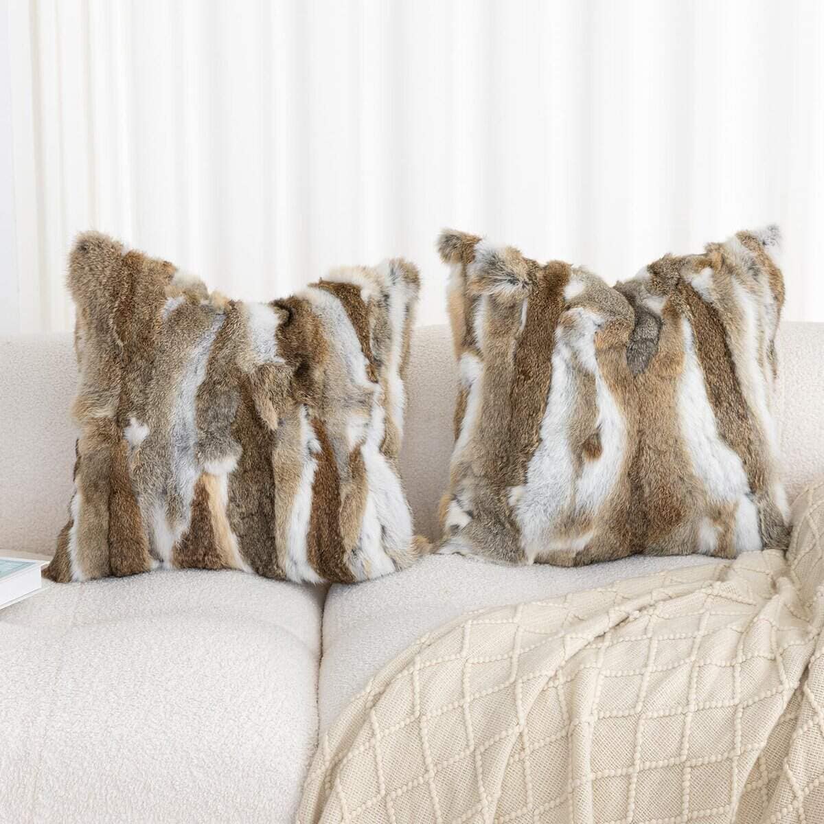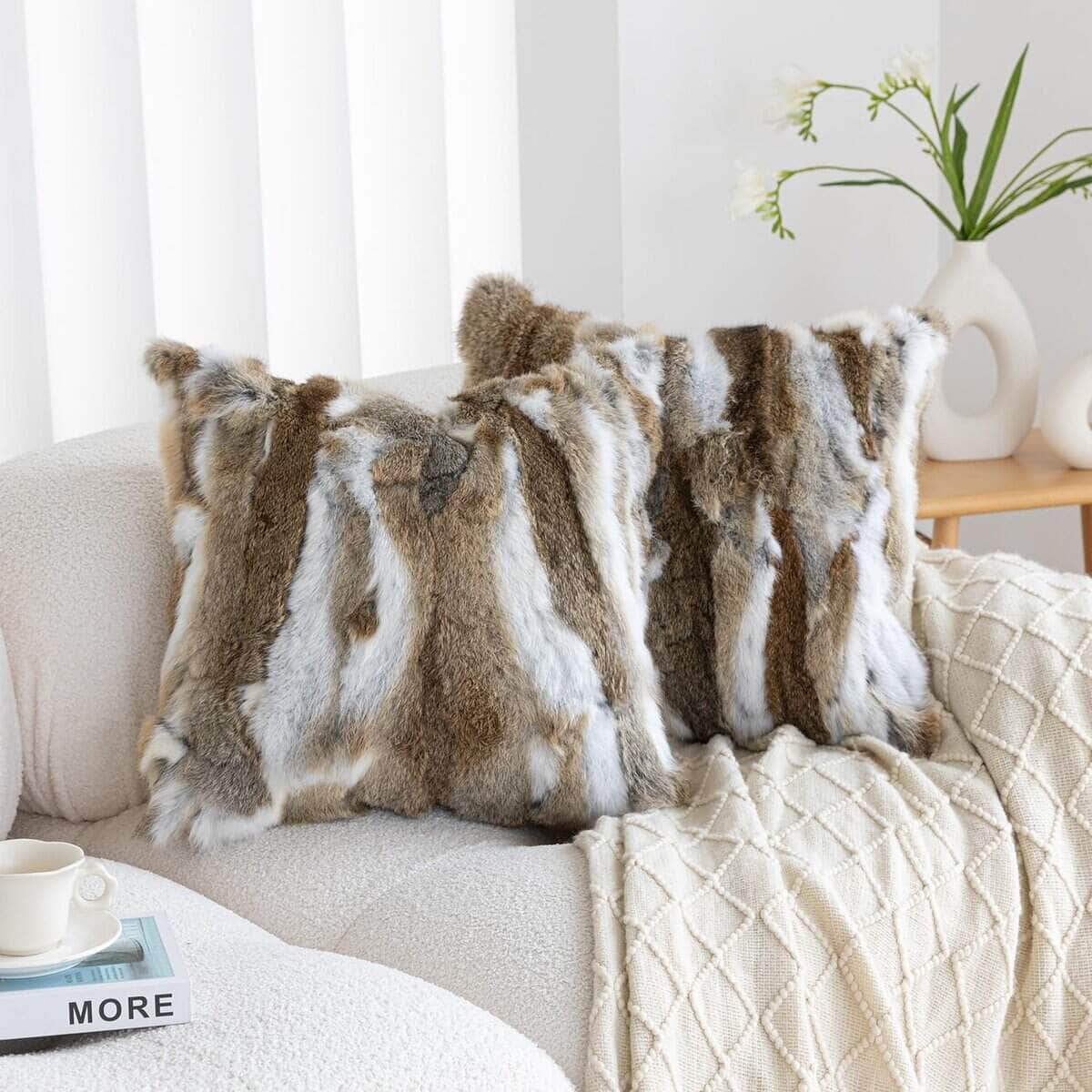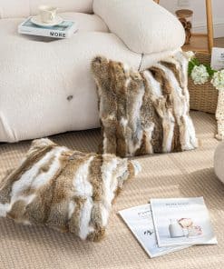 Fundas de cojín de piel genuina de conejo ROSE FEATHER