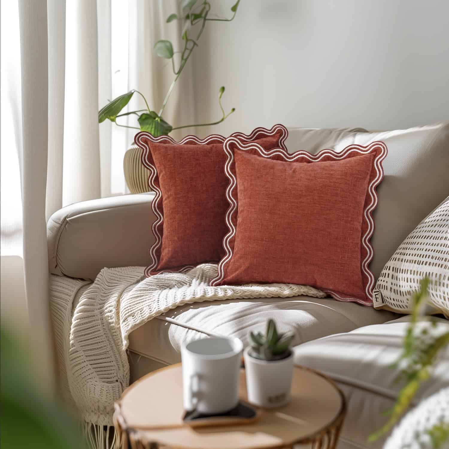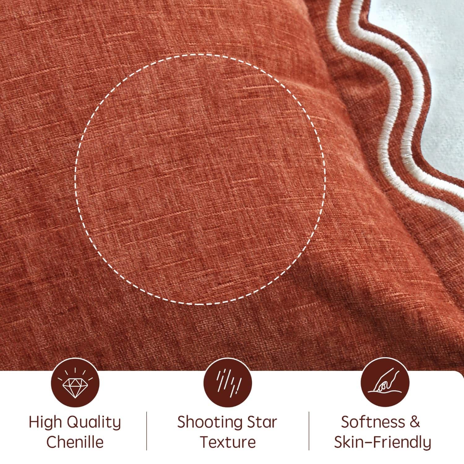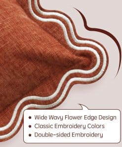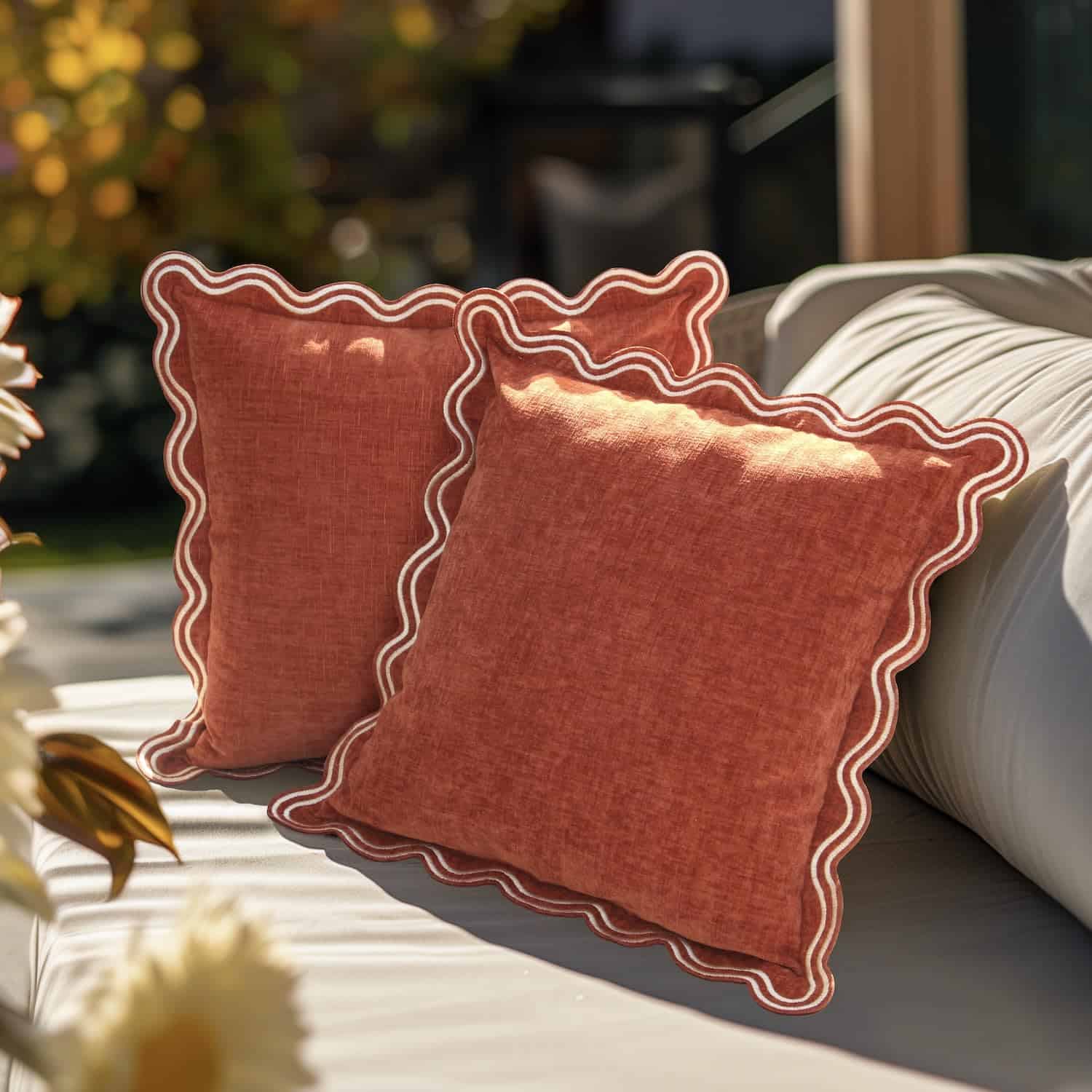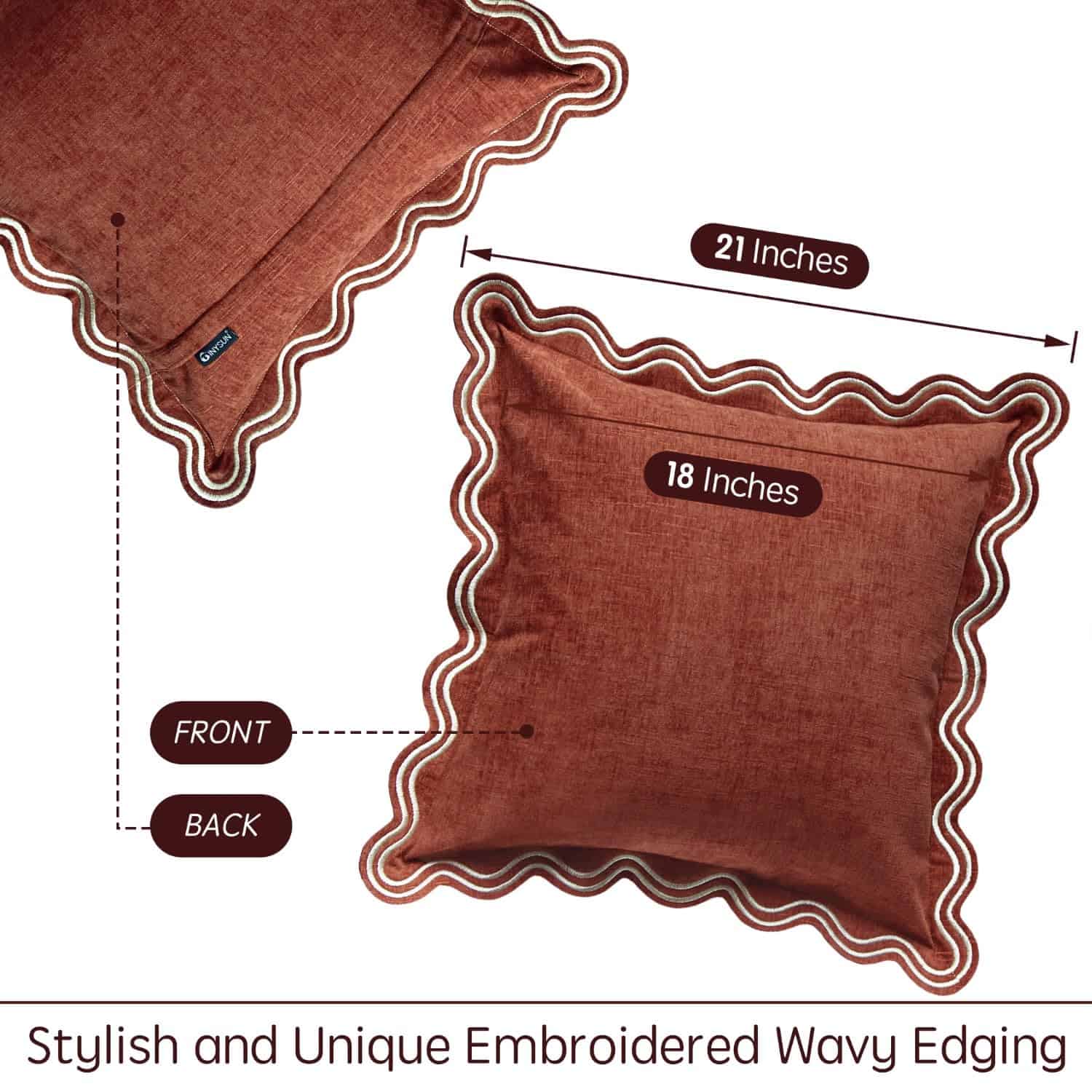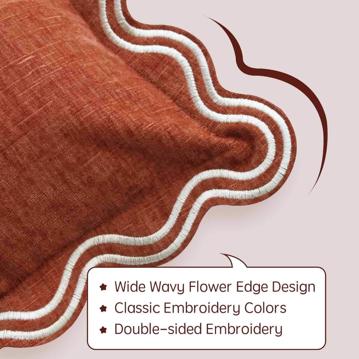 Estas fundas de cojín cuentan con un innovador diseño de bordes ondeados bordados de doble círculo con bordado a color en ambos lados, creando un aspecto constante y llamativo desde todos los ángulos. El diseño moderno realza la apariencia estética de cualquier habitación, ya sea su sala de estar, dormitorio, oficina o jardín exterior.