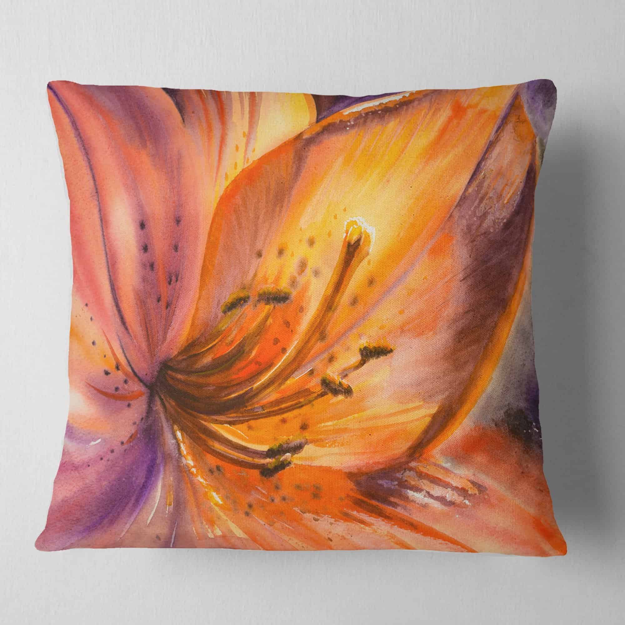 Fundas de Cojín Decorativo ‘Flor de Lirio Naranja’ para