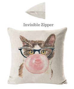 MATERIAL: Fundas de almohada con cremallera de lino de algodón duraderas para gatos, la tela es gruesa, de alta calidad, suave, transpirable y respetuosa con el medio ambiente. Las fundas de almohada de animal de granja con tema de gato de 45×45 son una gran sorpresa como regalos de inauguración de la casa.