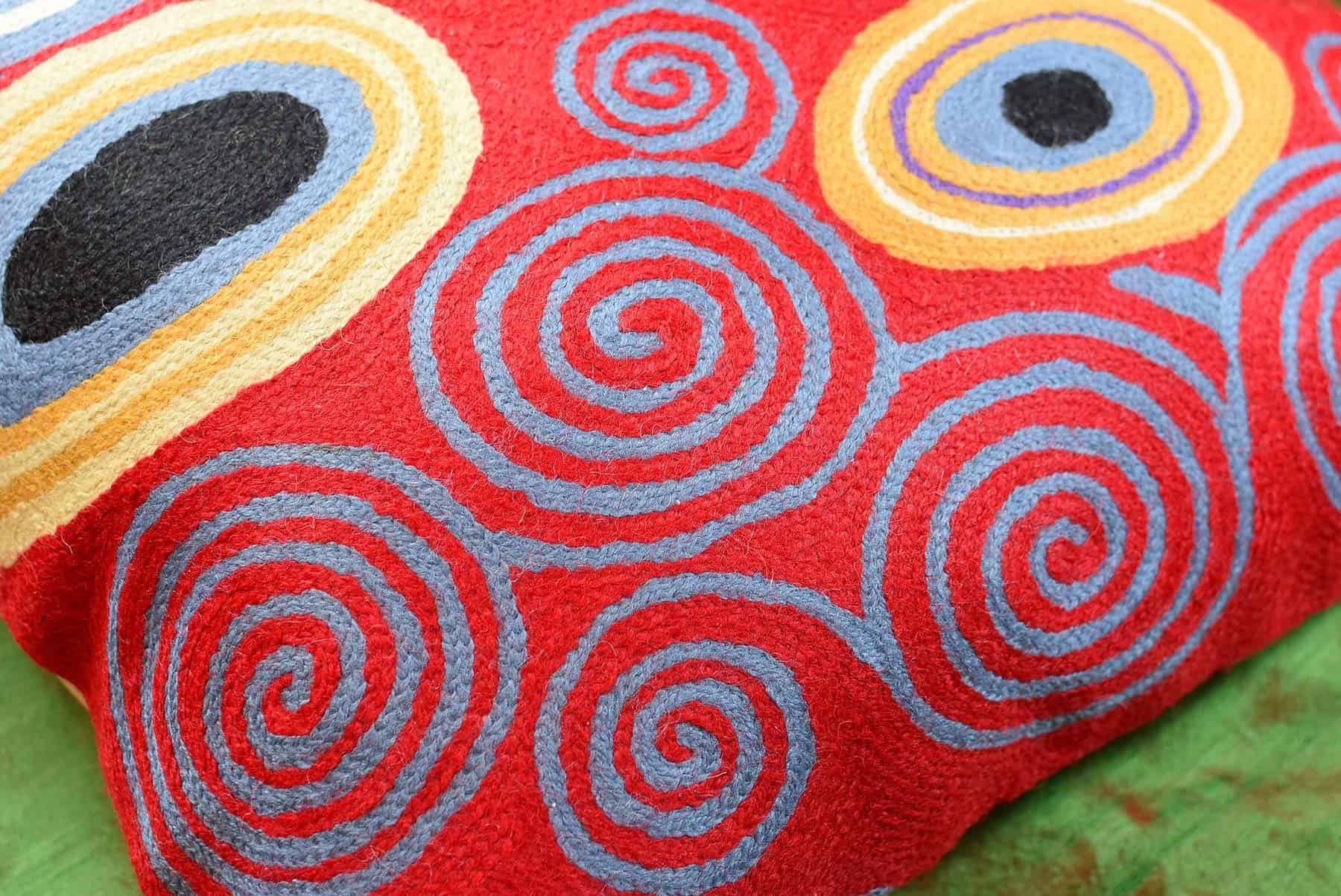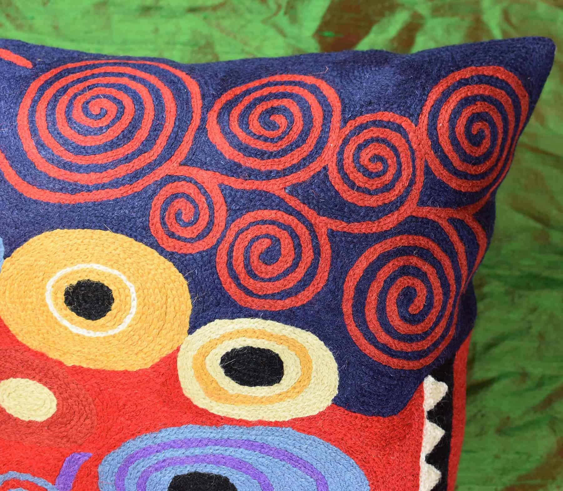 Decora tu hogar con esta hermosa funda de cojín roja y azul marino. Con un diseño moderno inspirado en Klimt y detalles bordados a mano, esta funda de almohada aportará un toque de sofisticación a tu sofá o silla. Hecha de lana de alta calidad y con un tamaño de 18×18, es perfecta para añadir un toque de color y estilo a cualquier espacio.